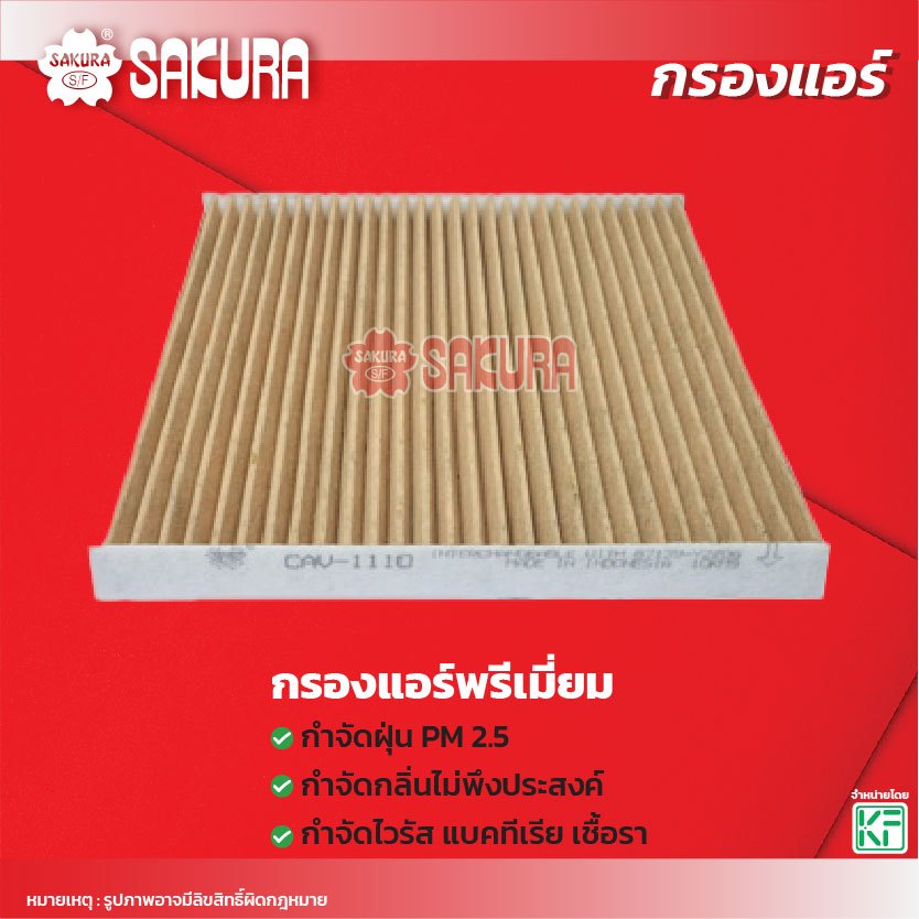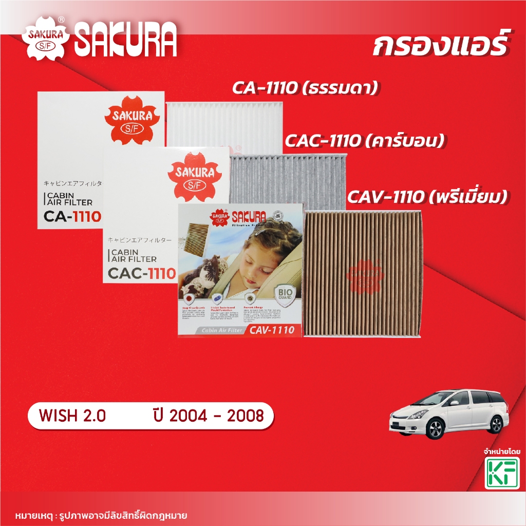 กรองแอร์ซากุระ ยี่ห้อรถ TOYOTA โตโยต้า / WISH วิช 2.0 ปี 2004-2008 รหัส CA-1110/CAC-1110/CAV-1110