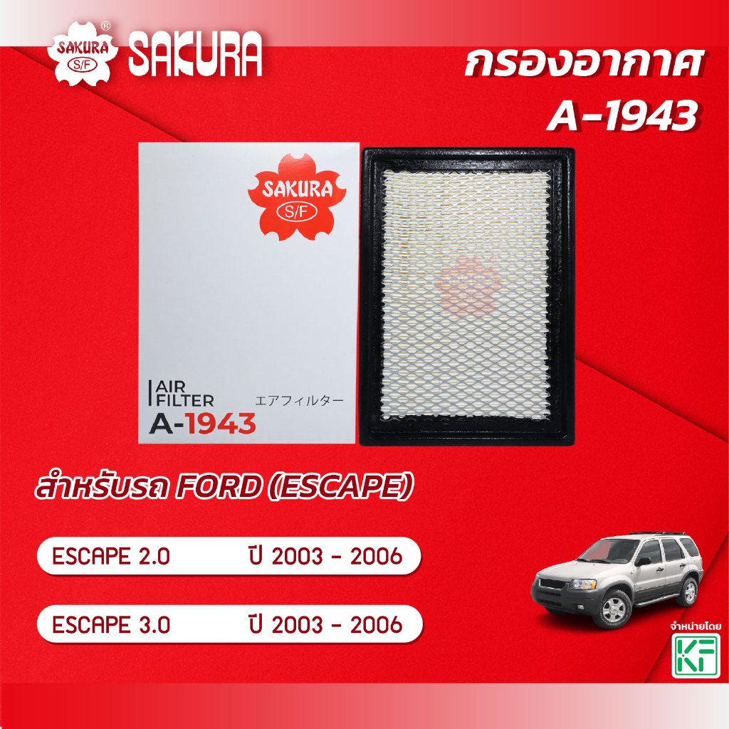 กรองอากาศซากุระ ยี่ห้อรถ FORD ฟอร์ด / ESCAPE เอสเคป เครื่องยนต์ 2.0 / 3.0 ปี 2003 - 2006 รหัสสินค้า A-1943