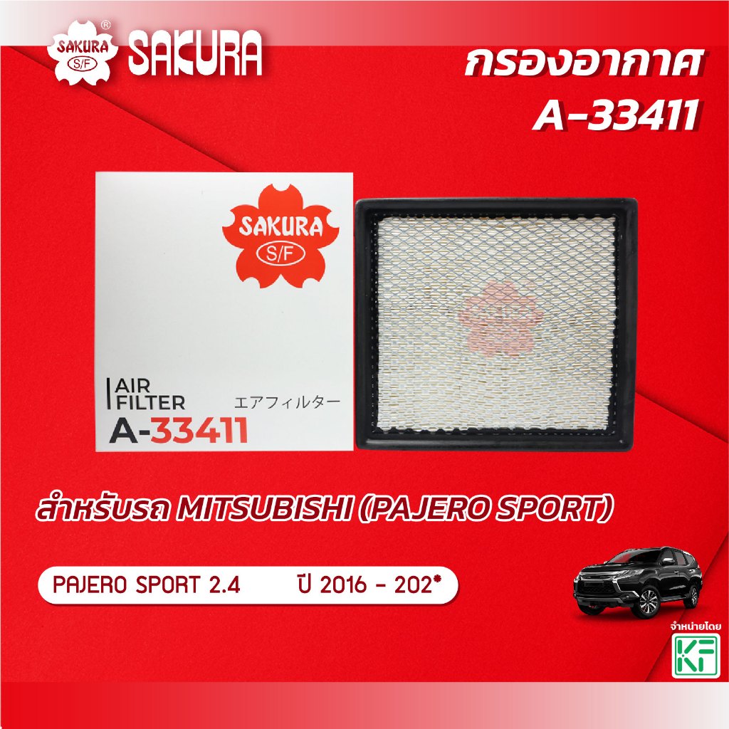 กรองอากาศ ยี่ห้อรถ MITSUBISHI มิตซูบิชิ / PAJERO SPORT ปาเจโร่ สปอร์ต เครื่องยนต์ 2.4 ปี 2015-202* ยี่ห้อ ซากุระ A-33411