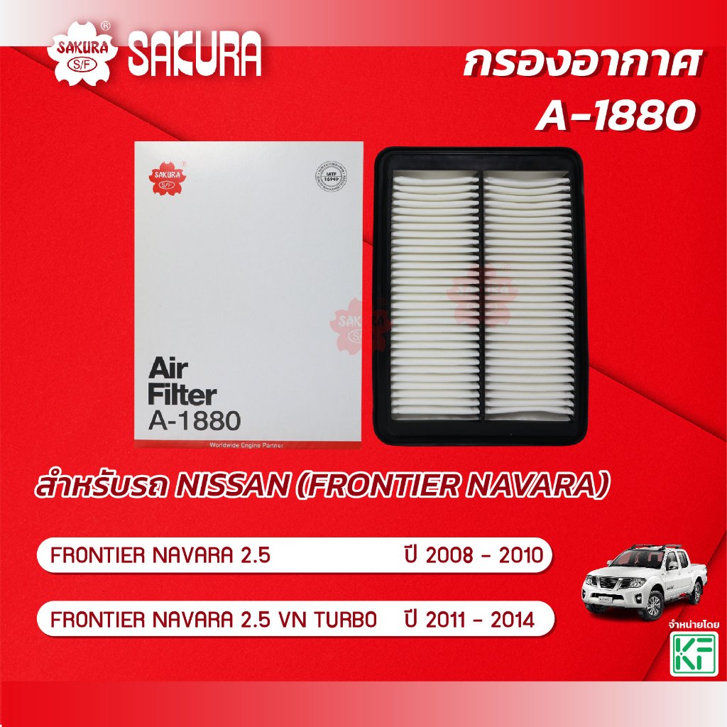 กรองอากาศ นิสสัน ฟรอนเทียร์ นาวาร่า NISSAN FRONTIER NAVARA 2.5 / 2.5 VIN TURBO ปี 2008 - 2014 ยี่ห้อ ซากุระ A-1880