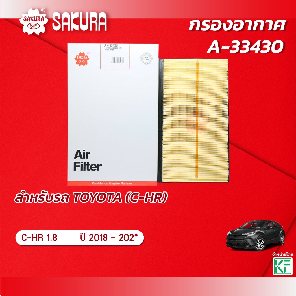 กรองอากาศ โตโยต้า ซีเอชอาร์ TOYOTA C-HR เครื่องยนต์ 1.8 ปี 2018 - 202* ยี่ห้อ ซากุระ A-33430