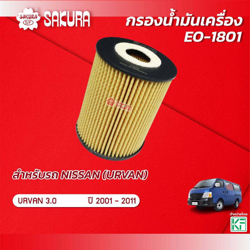 กรองน้ำมันเครื่องซากุระ ยี่ห้อรถ NISSAN นิสสัน / URVAN เออร์แวน เครื่องยนต์ 3.0 ปี 2001-2011 รหัสสินค้า EO-1801