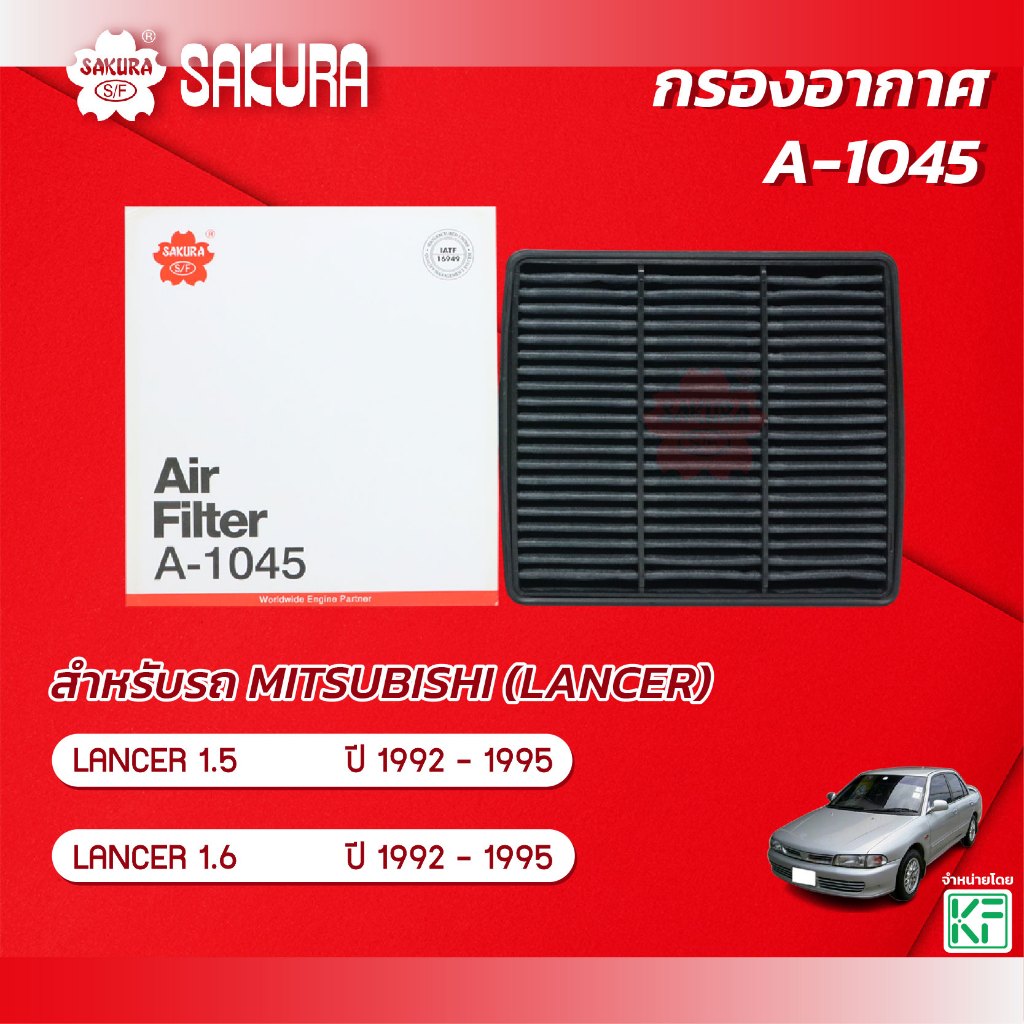 กรองอากาศซากุระ ยี่ห้อรถ MITSUBISHI มิตซูบิชิ / LANCER แลนเซอร์ เครื่องยนต์ 1.5 / 1.6 ปี 1992-1995 รหัสสินค้า A-1045