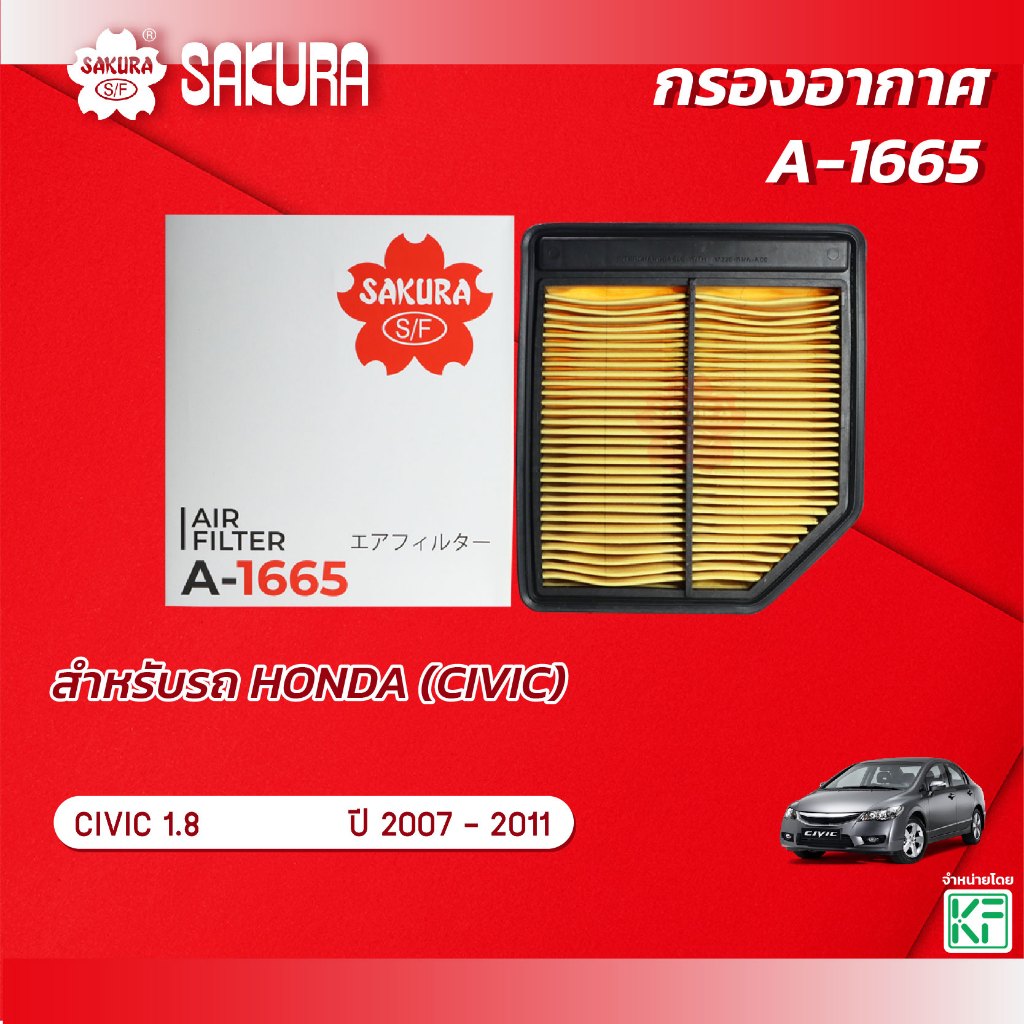 กรองอากาศ HONDA ฮอนด้า /CIVIC ซีวิค เครื่องยนต์ 1.8 ปี 2007-2011 ยี่ห้อ ซากุระ A-1665