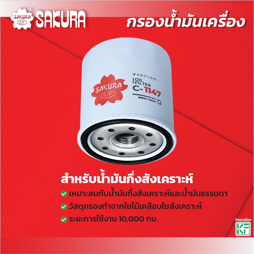 กรองน้ำมันเครื่องซากุระ TOYOTA โตโยต้า/FORTUNER ฟอร์จูนเนอร์ เครื่องยนต์ 2.4/2.5/2.7/2.8/3.0 รหัสสินค้า C-1147/C-1147XPL