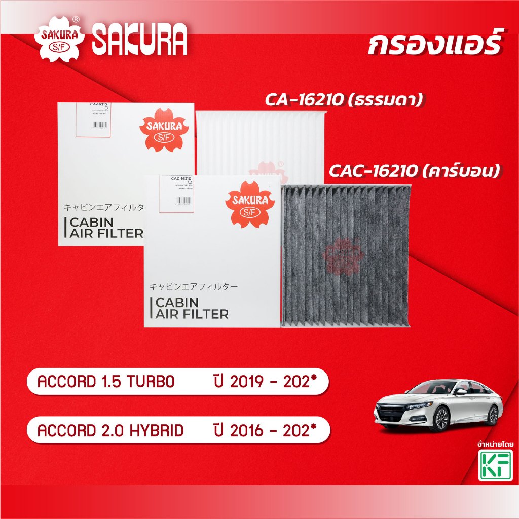 กรองแอร์ HOND ฮอนด้า/ACCORD แอคคอร์ด เครื่องยนต์ 1.5 TURBO / 2.0 HYBRID ปี 2016-202* ยี่ห้อ ซากุระ CA-16210 / CAC-16210