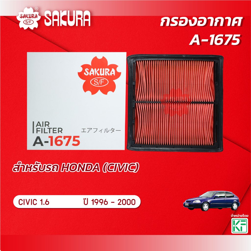 กรองอากาศ ฮอนด้า ซีวิค HONDA CIVIC เครื่องยนต์ 1.6 ปี 1996 - 2000 ยี่ห้อ ซากุระ A-1675