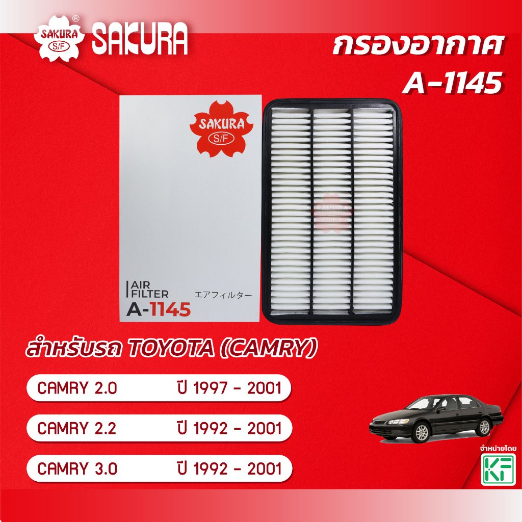 กรองอากาศ โตโยต้า แคมรี่ TOYOTA CAMRY เครื่องยนต์ 2.0 / 2.2 / 3.0 ปี 1992-2001 ยี่ห้อ ซากุระ A-1145