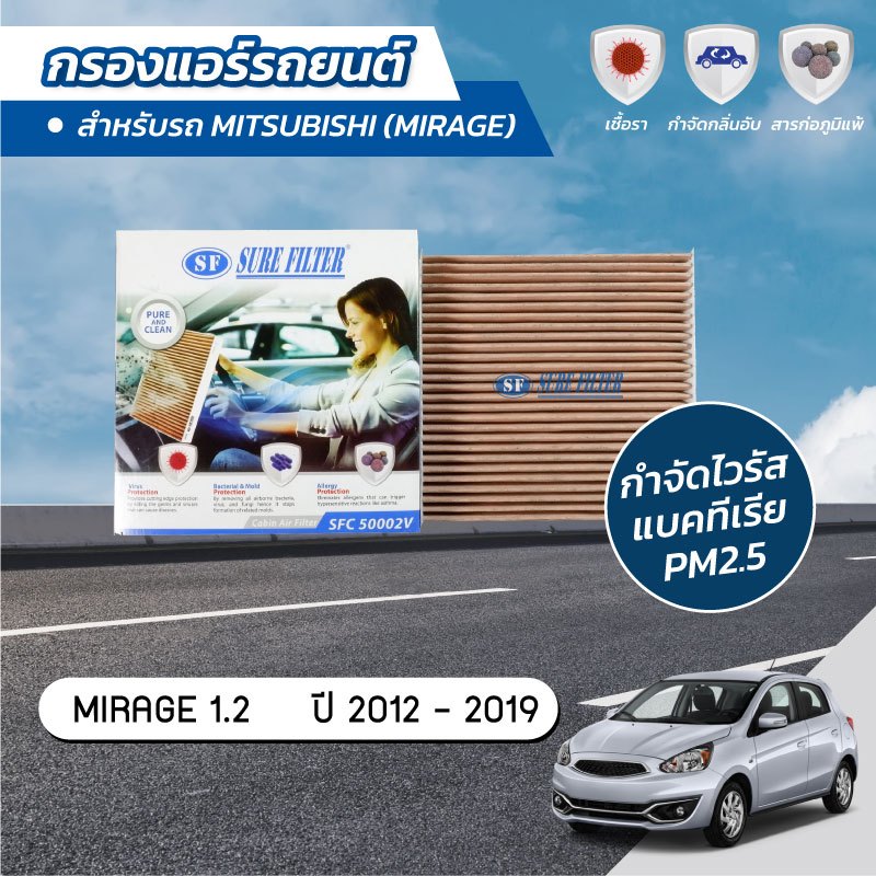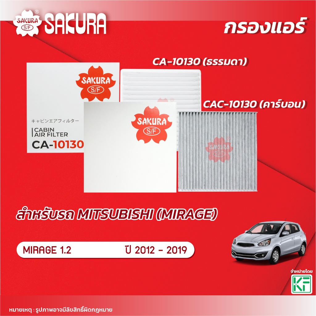 กรองแอร์ซากุระ/ชัวร์MITSUBISHI มิตซูบิชิ/MIRAGE มิราจ1.2 ปี2012-202*รหัสCA-10130/CAC-10130/SFC50002V