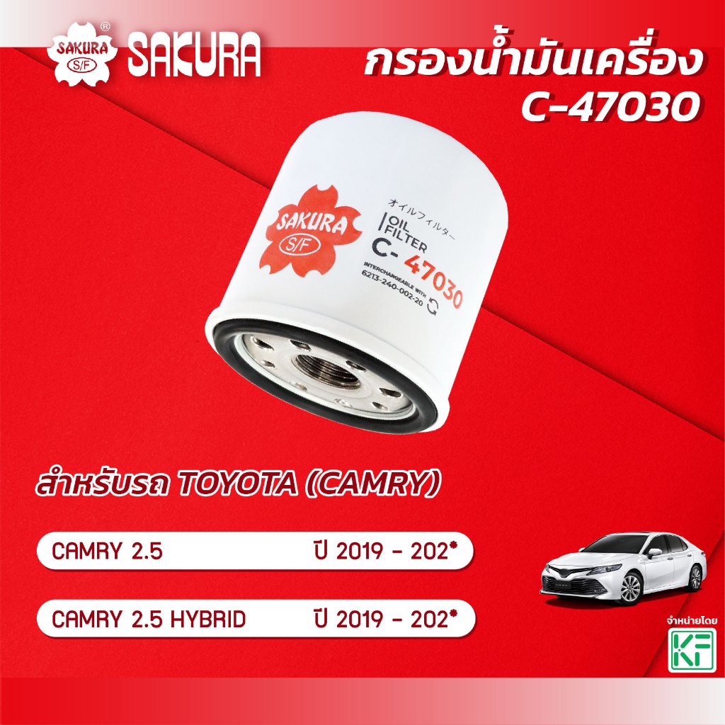 กรองน้ำมันเครื่อง โตโยต้า แคมรี่ TOYOTA CAMRY เครื่องยนต์ 2.5 / 2.5 HYBRID ปี 2019-202* ยี่ห้อ ซากุระ C-47030