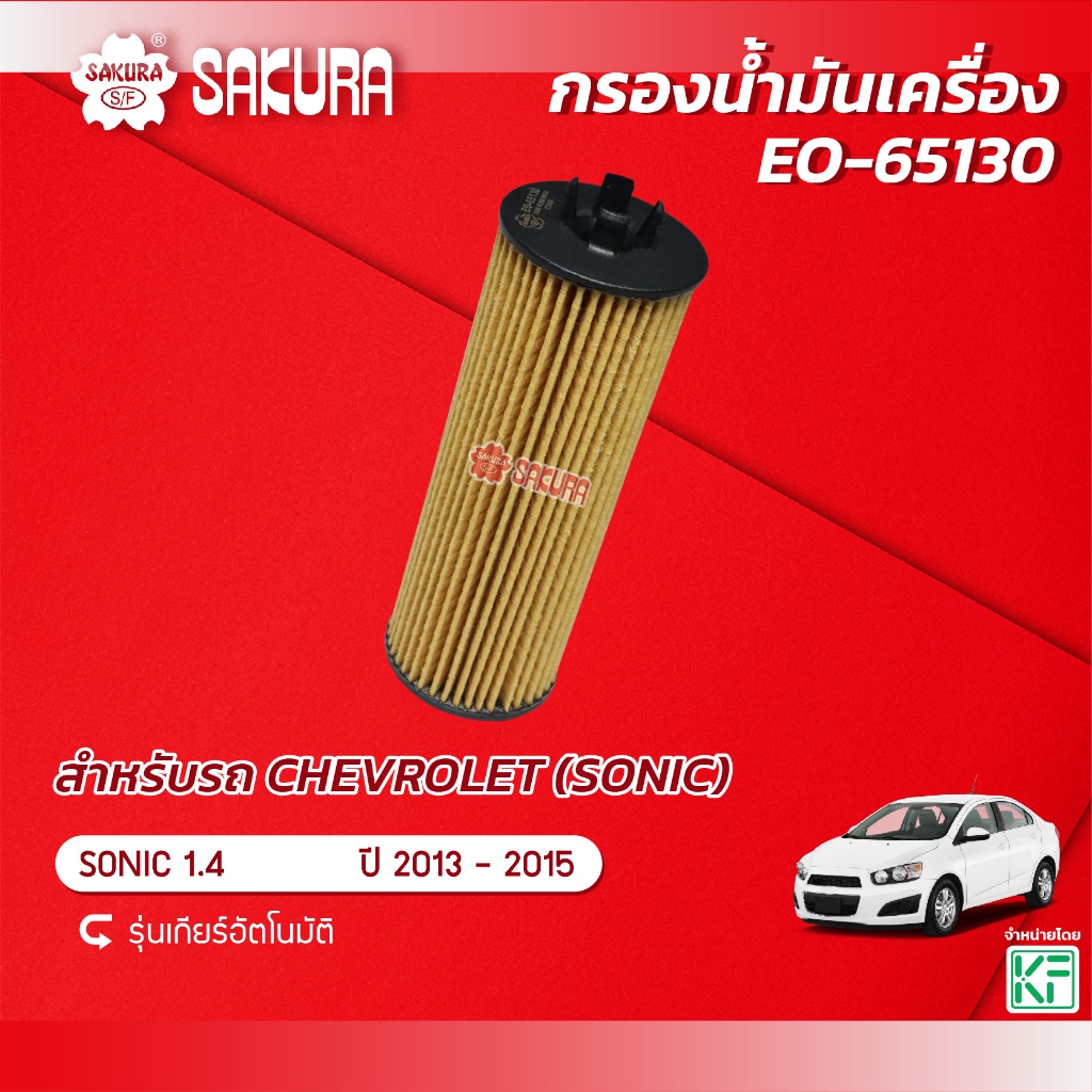 กรองน้ำมันเครื่องซากุระ CHEVROLET เชฟโลเลต /รุ่น SONIC โซนิค เครื่องยนต์ 1.4 *รุ่นเกียร์อัตโนมัติ* ปี 2013-2015 EO-65130