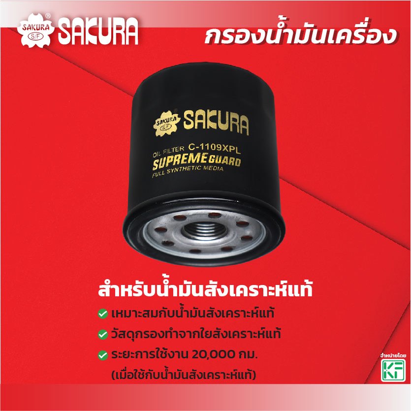 กรองน้ำมันเครื่องซากุระ TOYOTA โตโยต้า/ COROLLA โคโรลล่า 1.3/1.5/1.6/1.8 ปี 1992-2002 รหัสสินค้า C-1109/C-1109XPL
