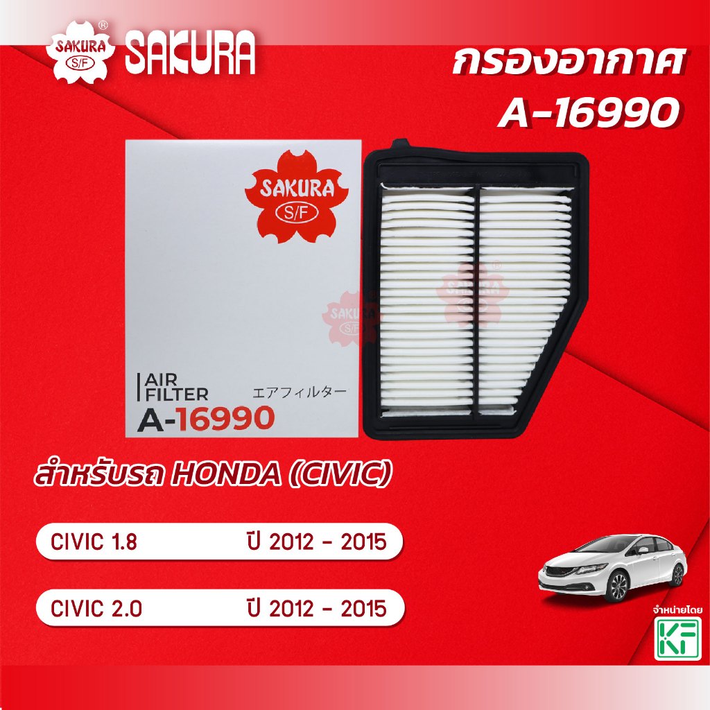 กรองอากาศ ฮอนด้า ซีวิค HONDA CIVIC เครื่องยนต์ 1.8 / 2.0 ปี 2012 - 2015 ยี่ห้อ ซากุระ A-16990