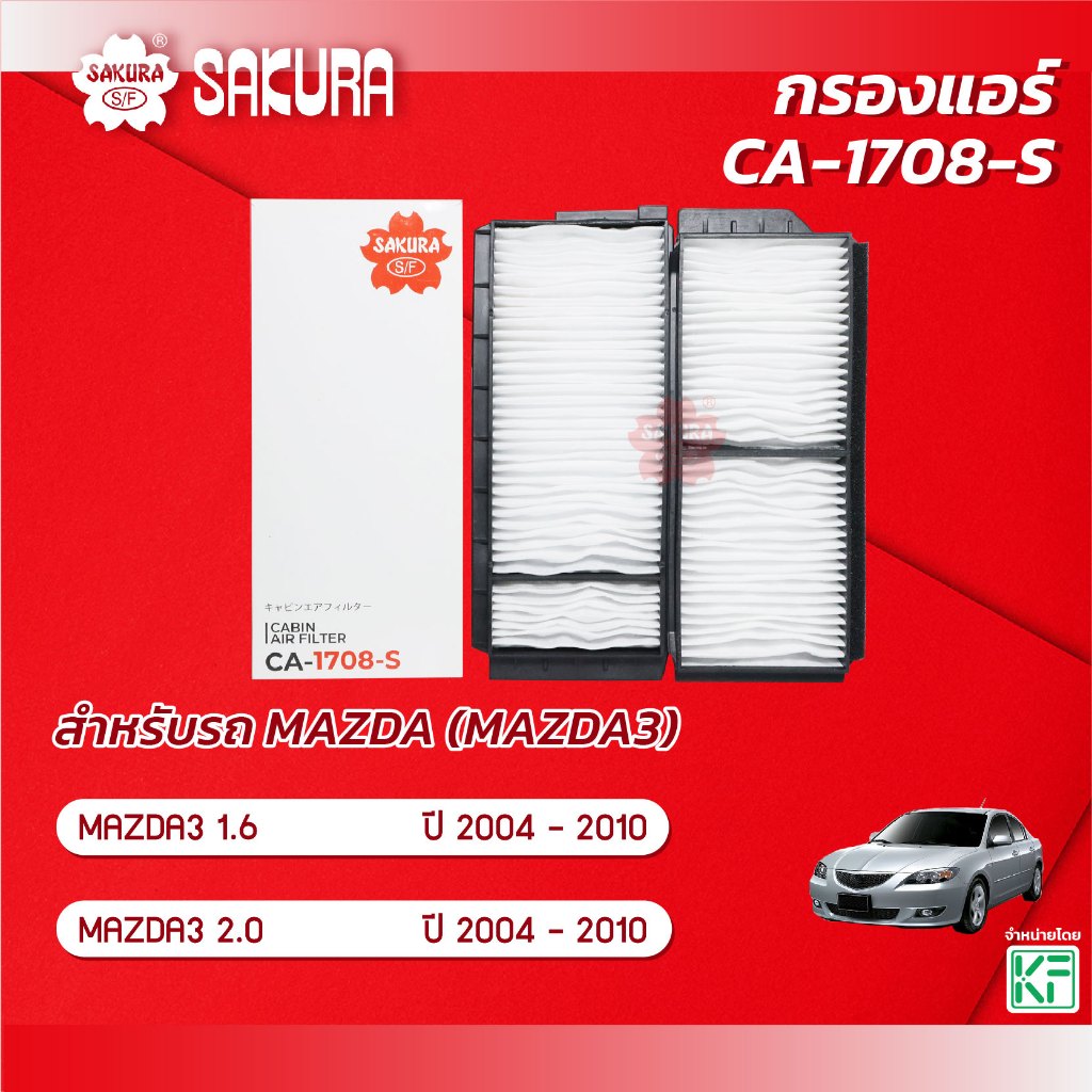 กรองแอร์ MAZDA 3/มาสด้า 3 เครื่องยนuต์ 1.6/2.0 ปี 2004 - 2010 ยี่ห้อ ซากุระ CA-1708-S