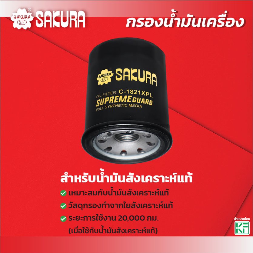 กรองน้ำมันเครื่องซากุระ ยี่ห้อรถ NISSAN นิสสัน / X-TRAIL เอ็กซ์เทรล 2.5 ปี 2005-2008 รหัสสินค้า C-1821/C-1821XPL