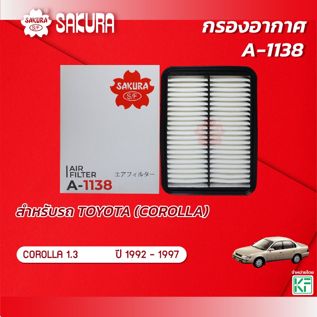 กรองอากาศซากุระ TOYOTA โตโยต้า / COROLLA โคโรลล่า เครื่องยนต์ 1.3 ปี 1992-1997 รหัสสินค้า A-1138