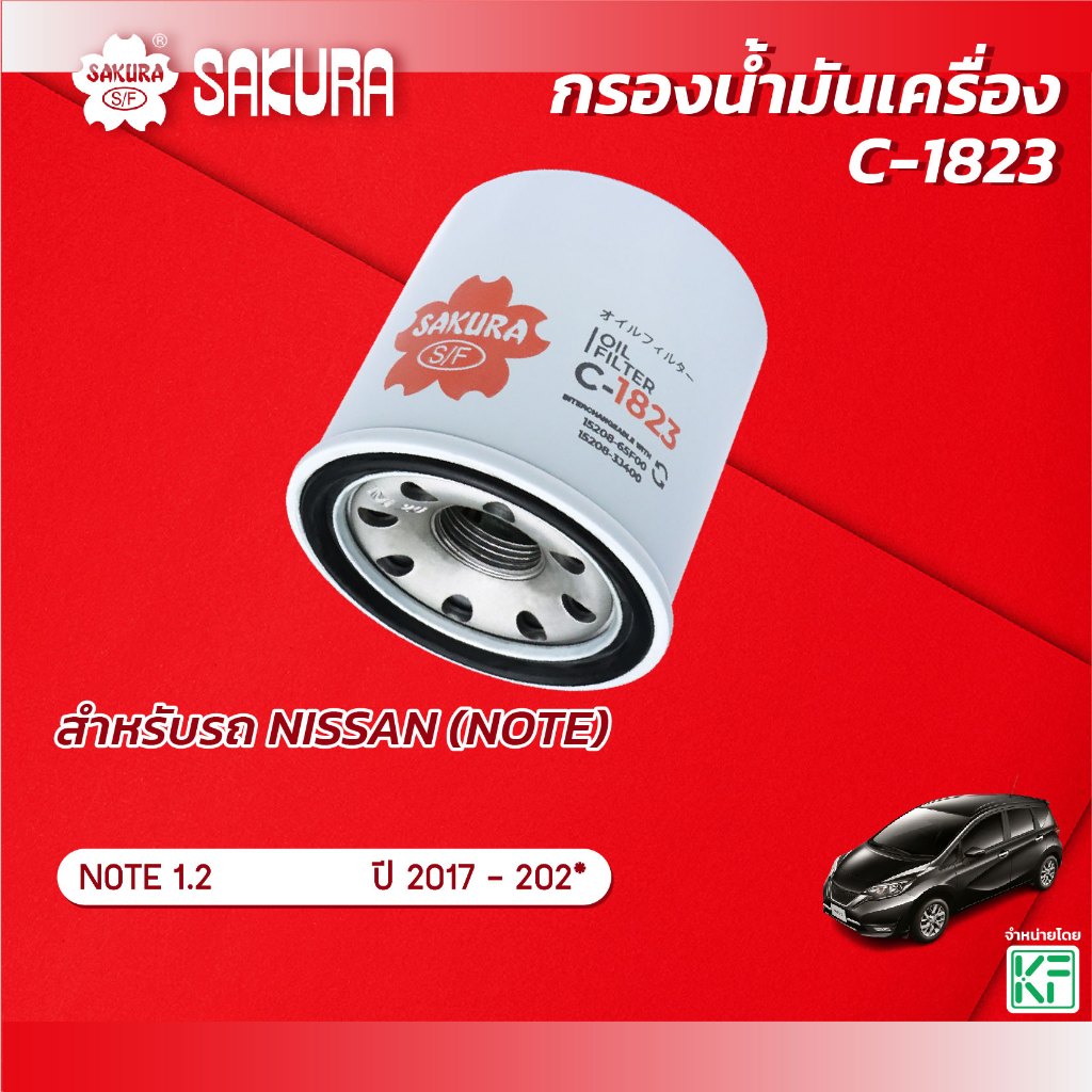กรองน้ำมันเครื่องซากุระ ยี่ห้อรถ NISSAN นิสสัน / NOTE โน๊ต เครื่องยนต์ 1.2 ปี 2017-202* รหัสสินค้า C-1823