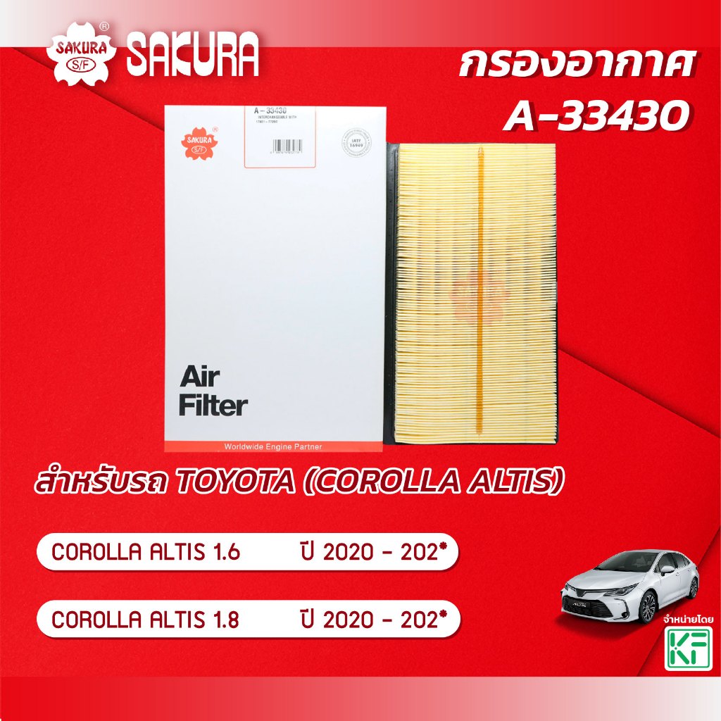 กรองอากาศ โตโยต้า อัสติส TOYOTA ALTIS เครื่องยนต์ 1.6 / 1.8 ปี 2020 -202* ยี่ห้อ ซากุระ A-33430