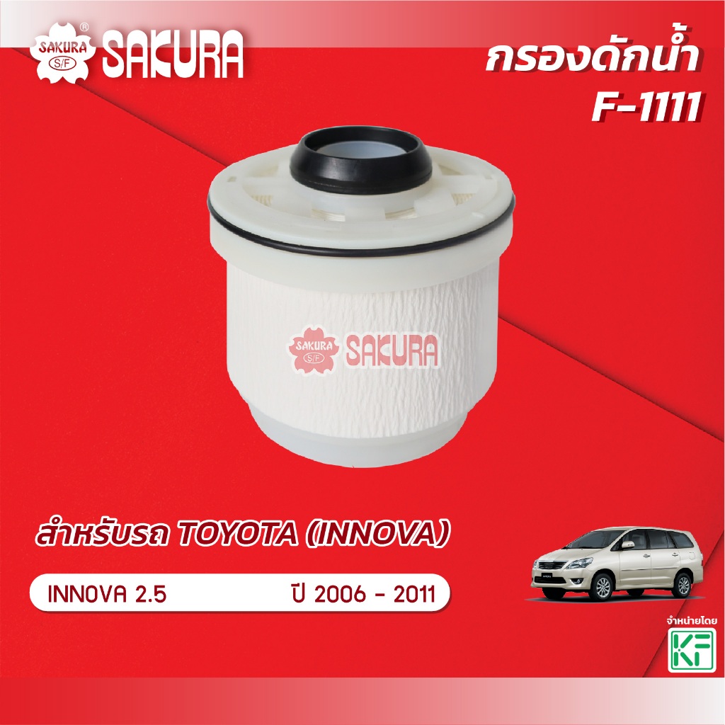 กรองน้ำมันเชื้อเพลิง/กรองโซล่า TOYOTA โตโยต้า/ INNOVA อินโนว่า เครื่องยนต์ 2.5 ปี 2006-2011 ยี่ห้อ ซากุระ F-1111