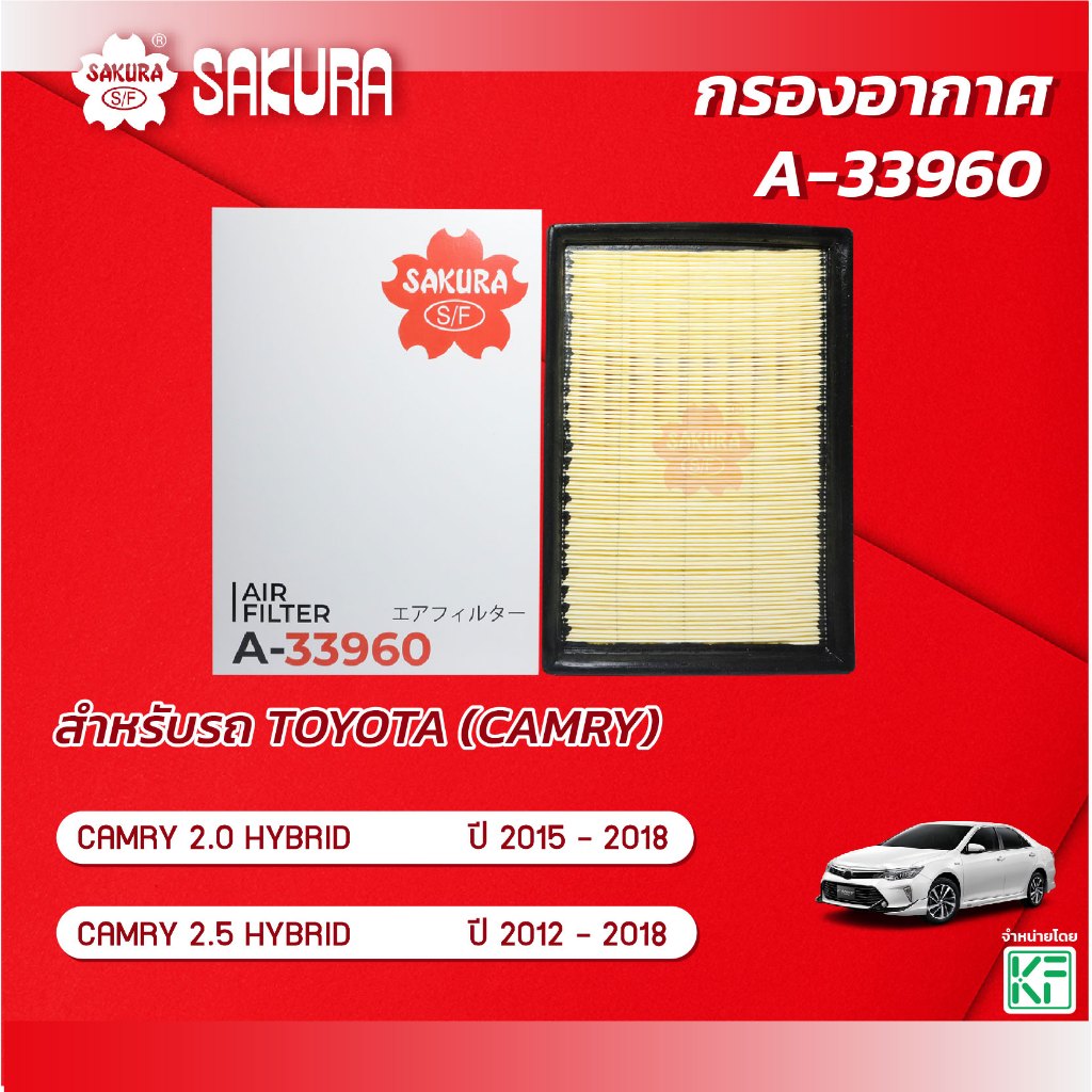 กรองอากาศ โตโยต้า แคมรี่ TOYOTA CAMRY HYBRID เครื่องยนต์ 2.0 /2.5 /HYBRID ปี 2012 - 2018 ยี่ห้อ ซากุระ A-33960