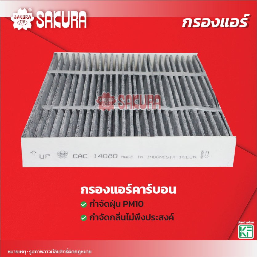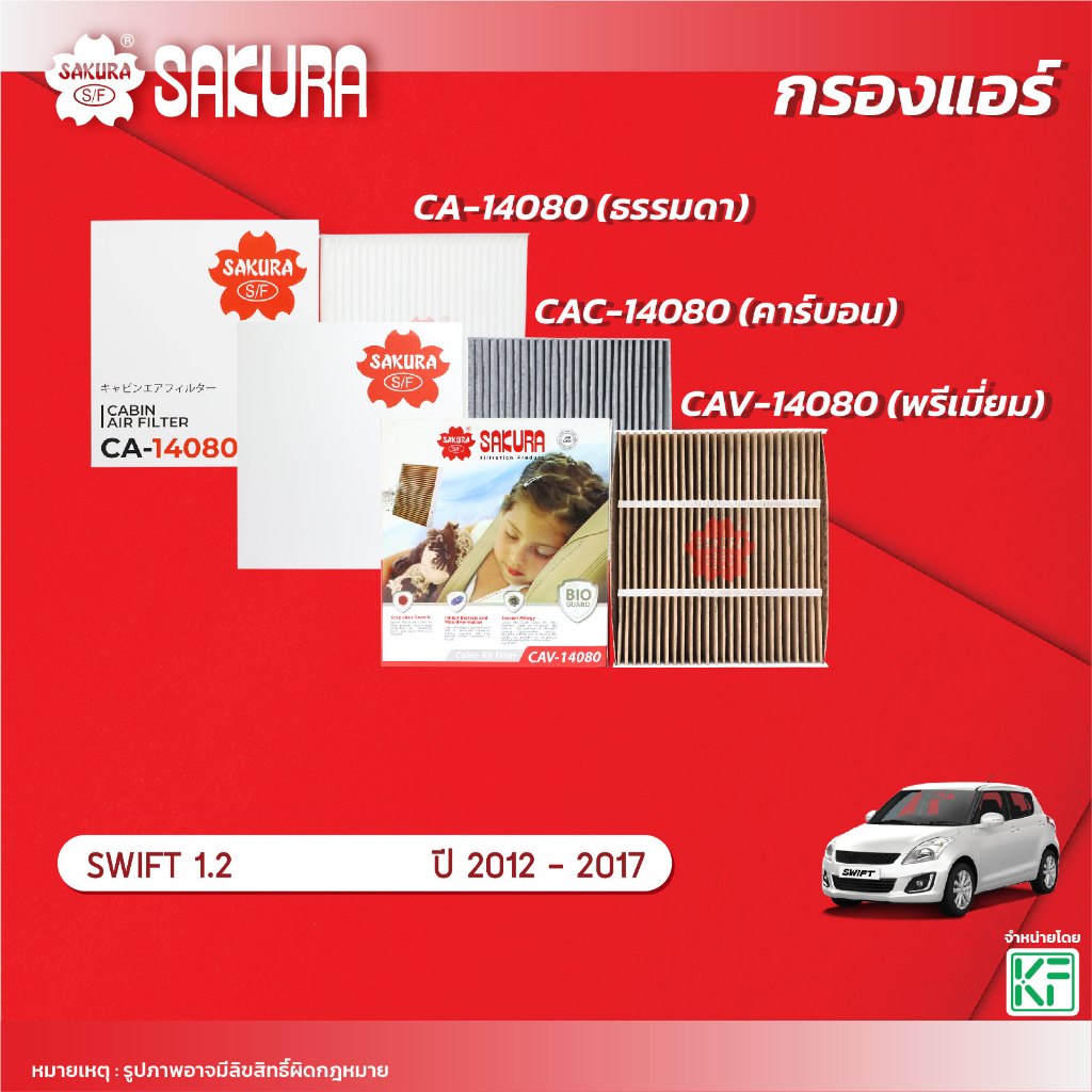 กรองแอร์ SUZUKI ซูซุกิ / SWIFTสวิฟ เครื่องยนต์ 1.2 ปี 2012-2017 ยี่ห้อ ซากุระ CA-14080/CAC-14080/CAV-14080