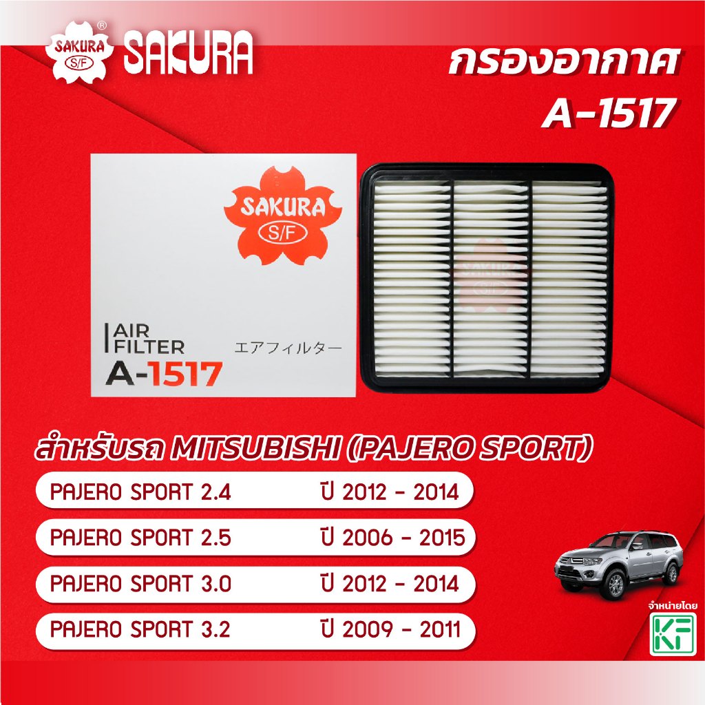 กรองอากาศ MITSUBISHI มิตซูบิชิ / PAJERO SPORT ปาเจโร่ สปอร์ต 2.4 / 2.5 / 3.0 / 3.2 ปี 2006 - 2015 ยี่ห้อ ซากุระ A-1517