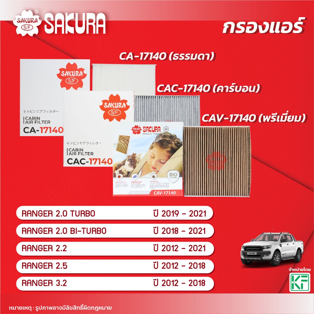 กรองแอร์ FORD ฟอร์ด / RANGER เรนเจอร์ 2.0 TURBO / 2.0 BI-TURBO/2.2/2.5/3.2/ปี 2012-2021 CA-17140/CAC-17140/CAV-17140