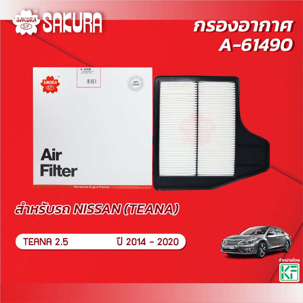 กรองอากาศซากุระ NISSAN นิสสัน / TEANA เทียน่า เครื่องยนต์ 2.5 ปี 2014-2020 รหัสสินค้า A-61490