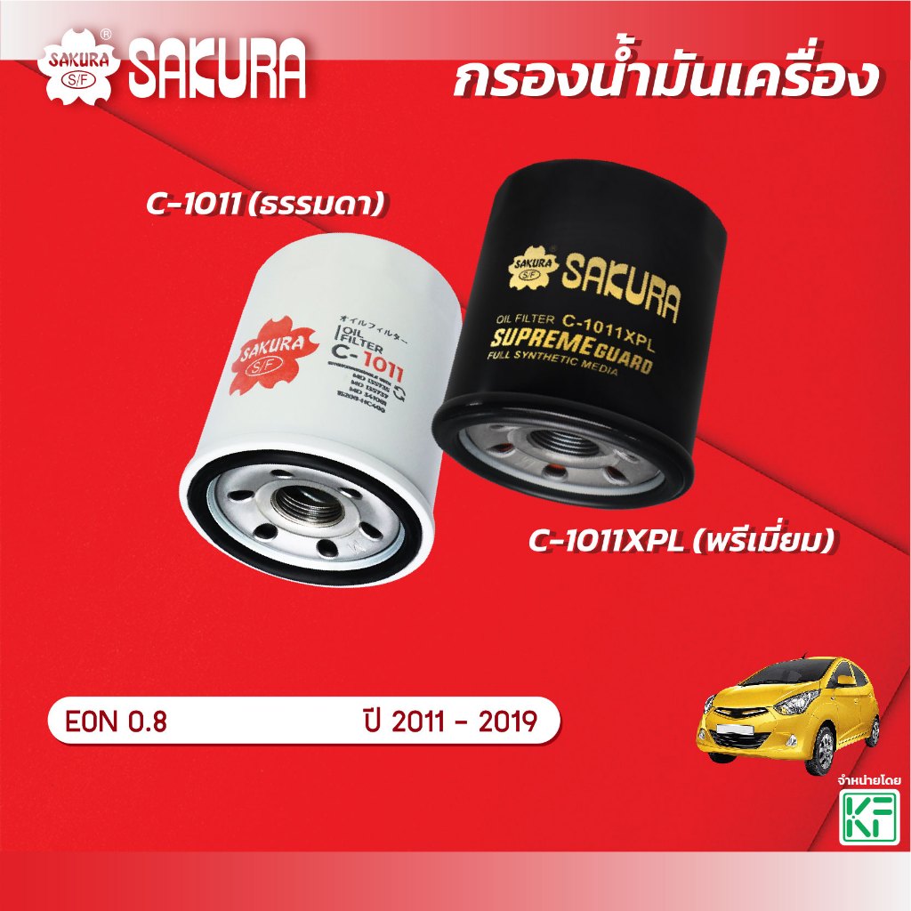 กรองน้ำมันเครื่องซากุระ ยี่ห้อรถ HYUNDAI ฮุนได / EON โออีเอ็น เครื่องยนต์ 0.8 ปี 2011-2019 รหัสสินค้า C-1011/C-1011XPL