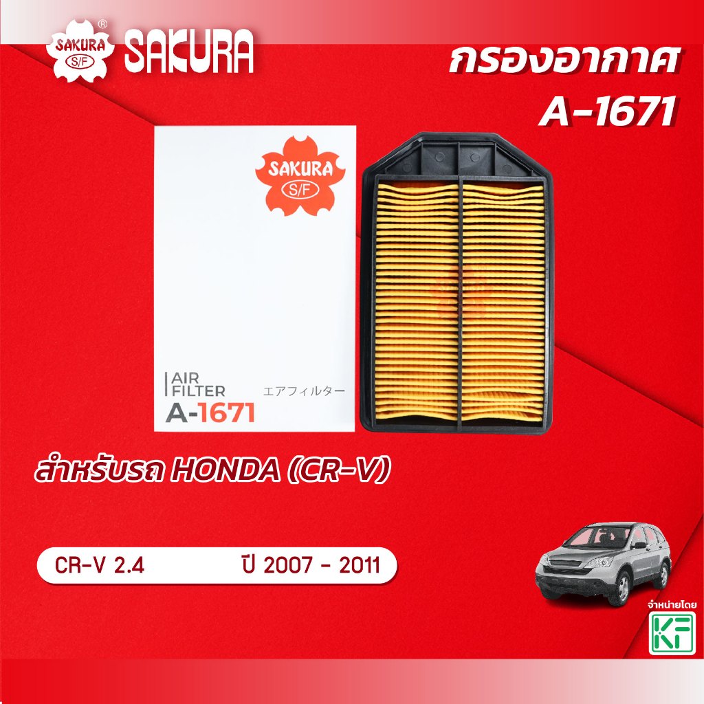 กรองอากาศ HONDA ฮอนด้า / CR-V ซีอาร์วี เครื่อง 2.4 ปี 2007-2011 ยี่ห้อ ซากุระ A-1671