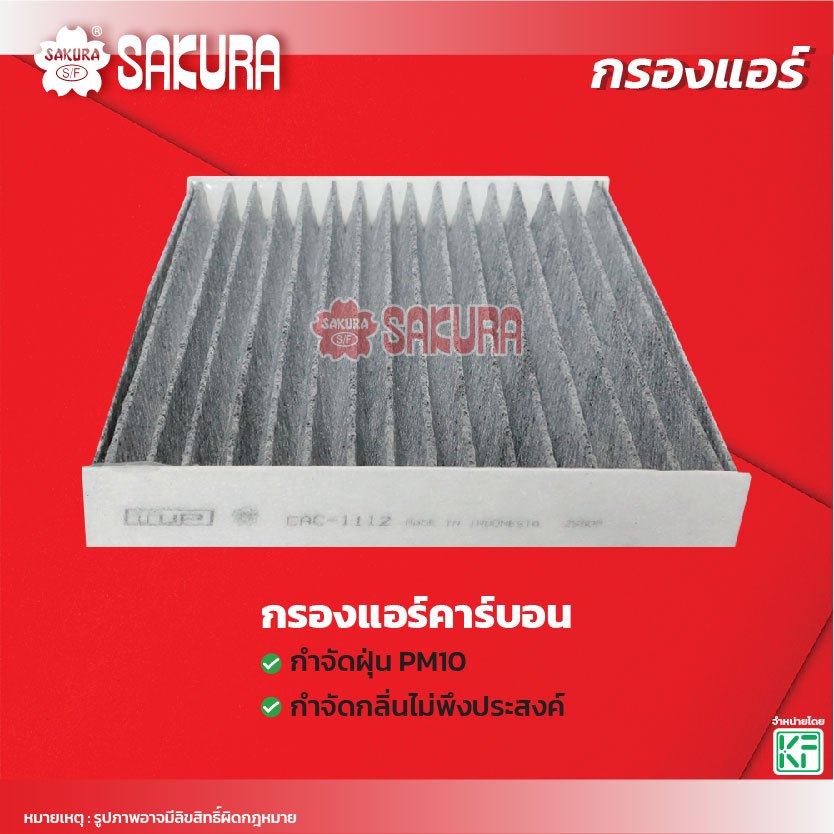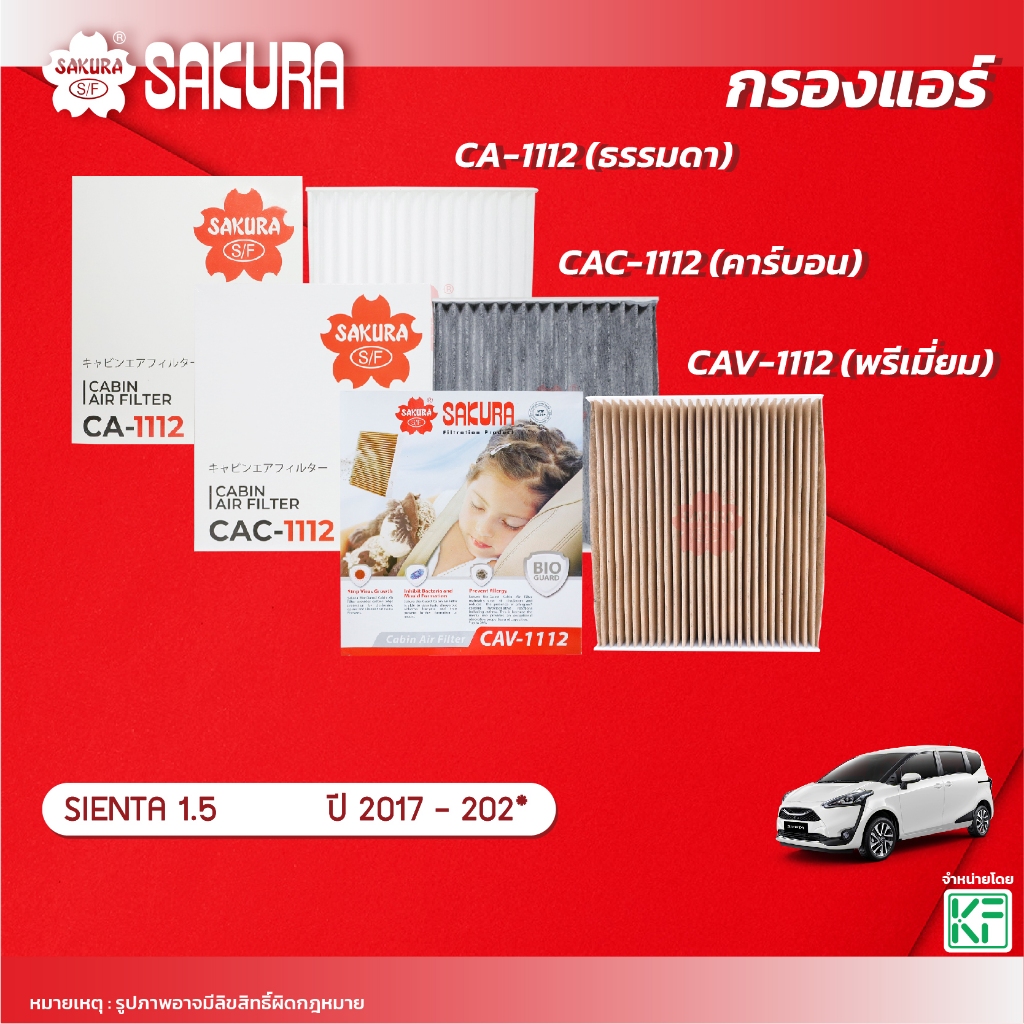 กรองแอร์ซากุระ TOYOTA โตโยต้า / SIENTA เซียนต้า เครื่องยนต์ 1.5 ปี 2017-202* รหัสสินค้า CA-1112/CAC-1112/CAV-1112