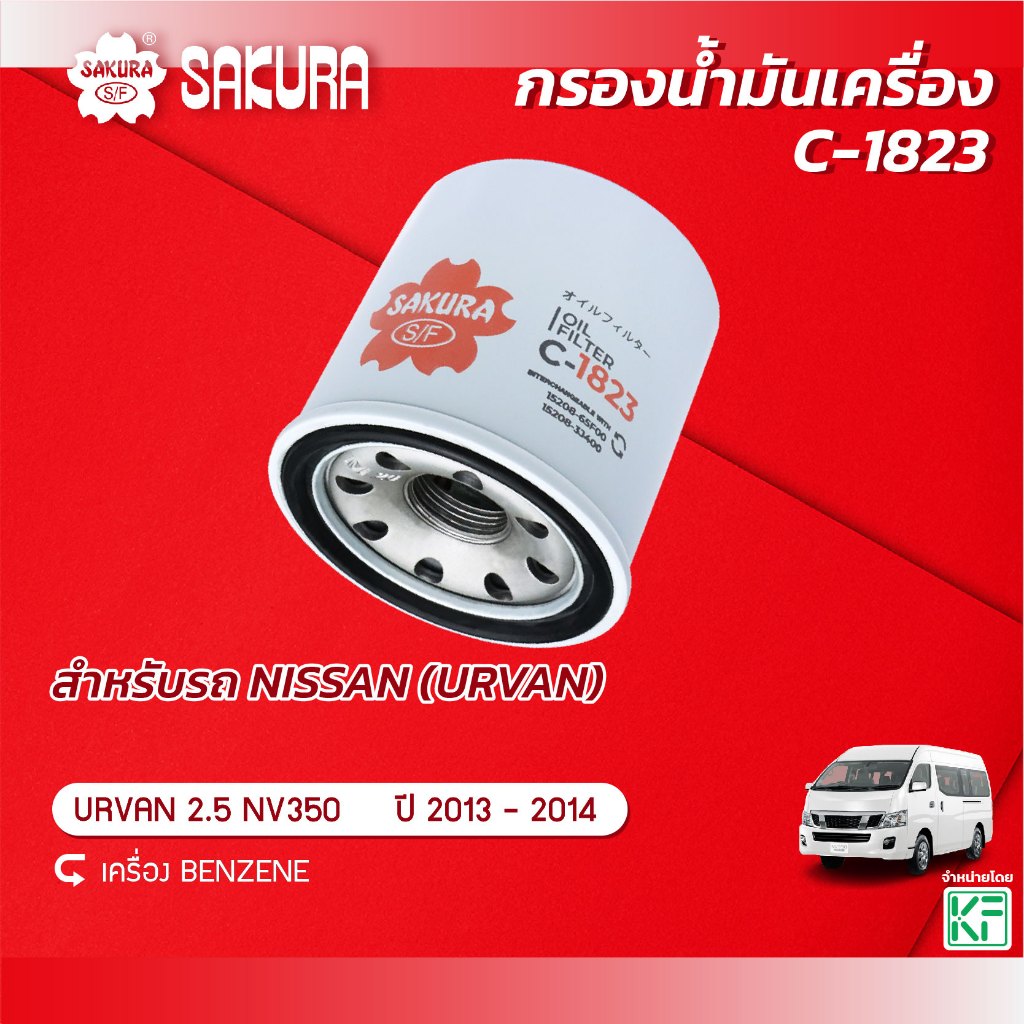 กรองน้ำมันเครื่องซากุระ ยี่ห้อรถ NISSAN นิสสัน / URVAN เออร์แวน เครื่องยนต์ 2.5 BENZENE ปี 2013-2014 รหัสสินค้า C-1823