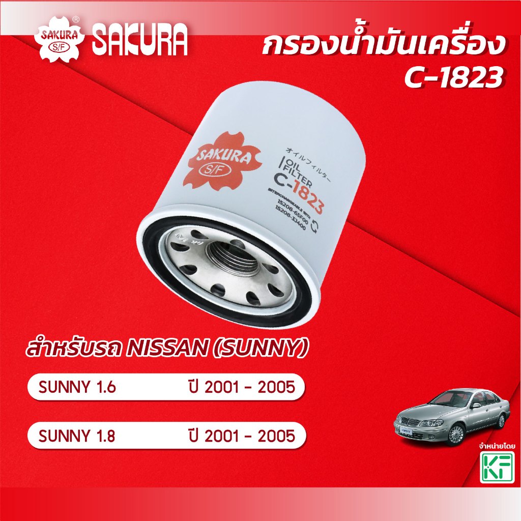 กรองน้ำมันเครื่องซากุระ ยี่ห้อรถ NISSAN นิสสัน /SUNNY NEO ซันนี่ นีโอ เครื่องยนต์ 1.6 / 1.8 ปี 2001-2005 C-1823