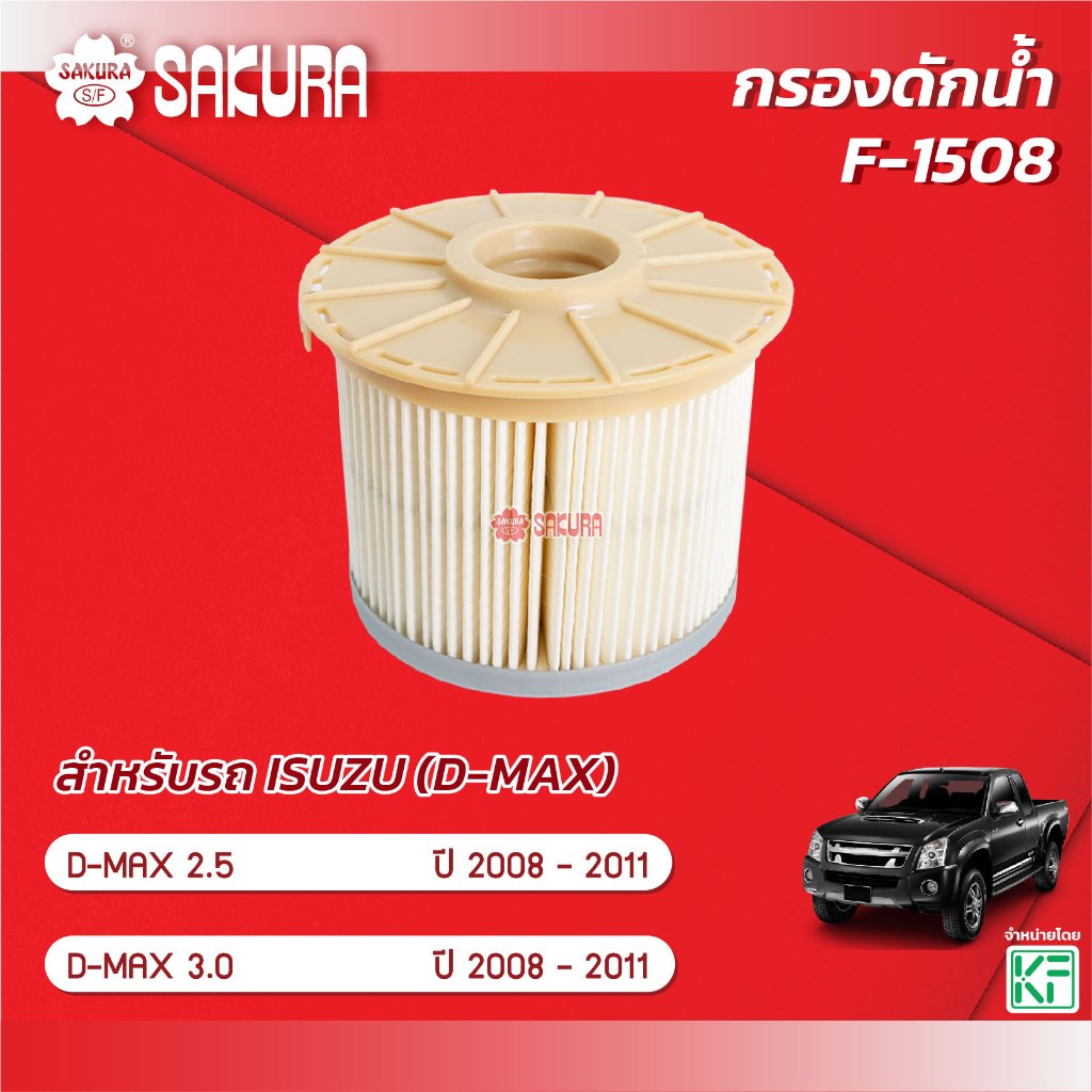 กรองน้ำมันเชื้อเพลิง/กรองโซล่า ISUZU อีซูซุ / D-MAX ดีแม็กซ์ เครื่องยนต์ 2.5 / 3.0 ปี 2008-2011 ยี่ห้อ ซากุระ F-1508