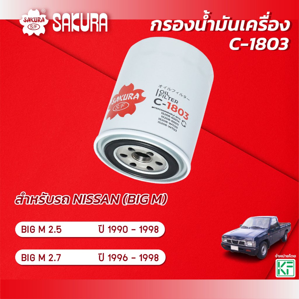 กรองน้ำมันเครื่อง นิสสัน บิ๊กเอ็ม NISSAN BIG M ปี 1990-1998 ยี่ห้อ ซากุระ รหัสสินค้า C-1803