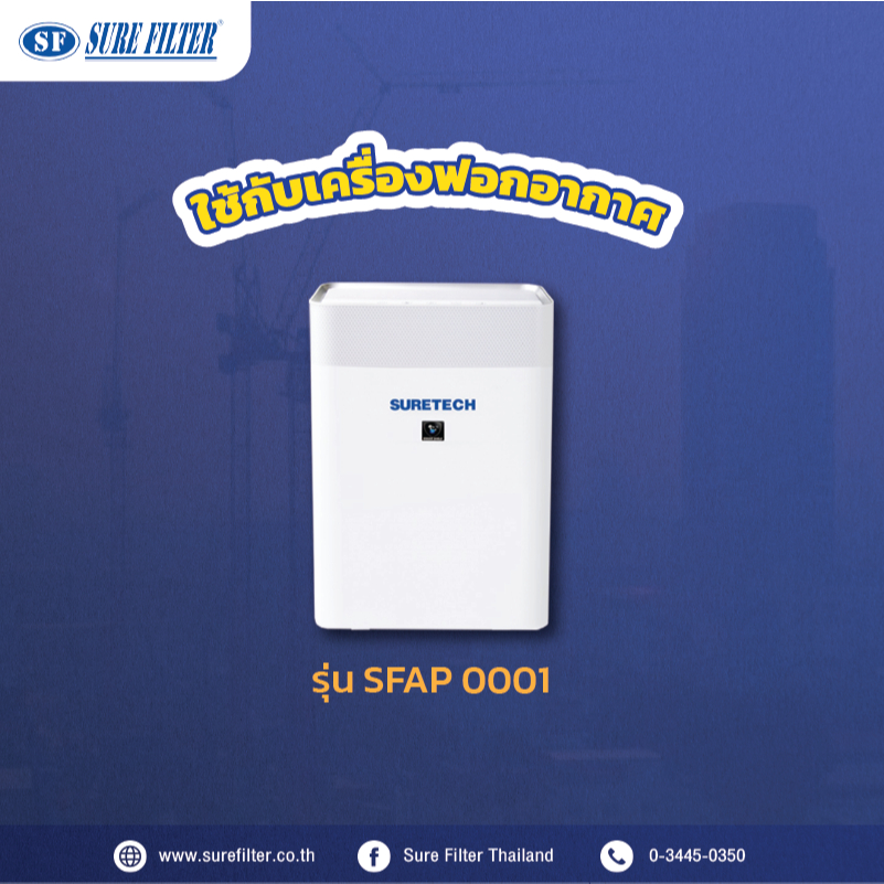 แผ่นกรองเครื่องฟอกอากาศยี่ห้อชัวร์เทค รุ่น SFAP 0001 ยี่ห้อ ชัวร์ฟิลเตอร์ SFP 0142SET