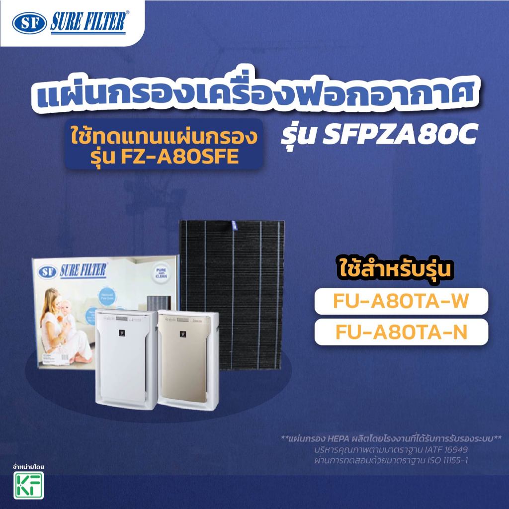 แผ่นกรองเครื่องฟอกอากาศ ใช้ทดแทน SHARP ชาร์ป FZ-A80SFE สำหรับเครื่อง FU-A80TA-W,FU-A80TA-N แผ่นกรองHEPA