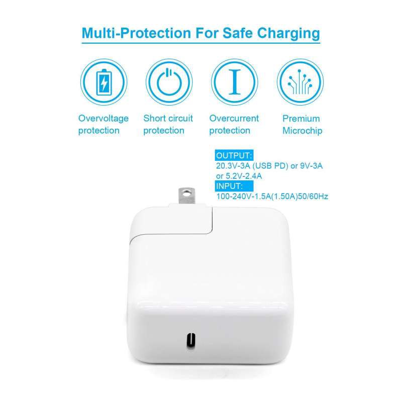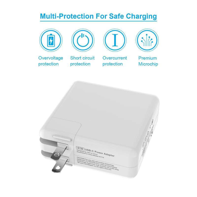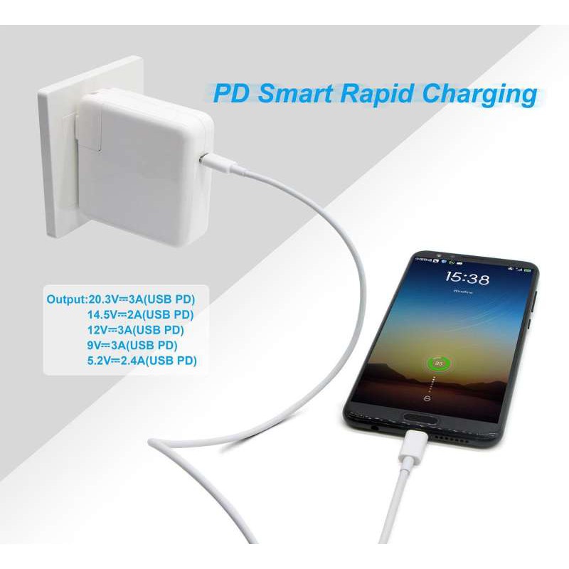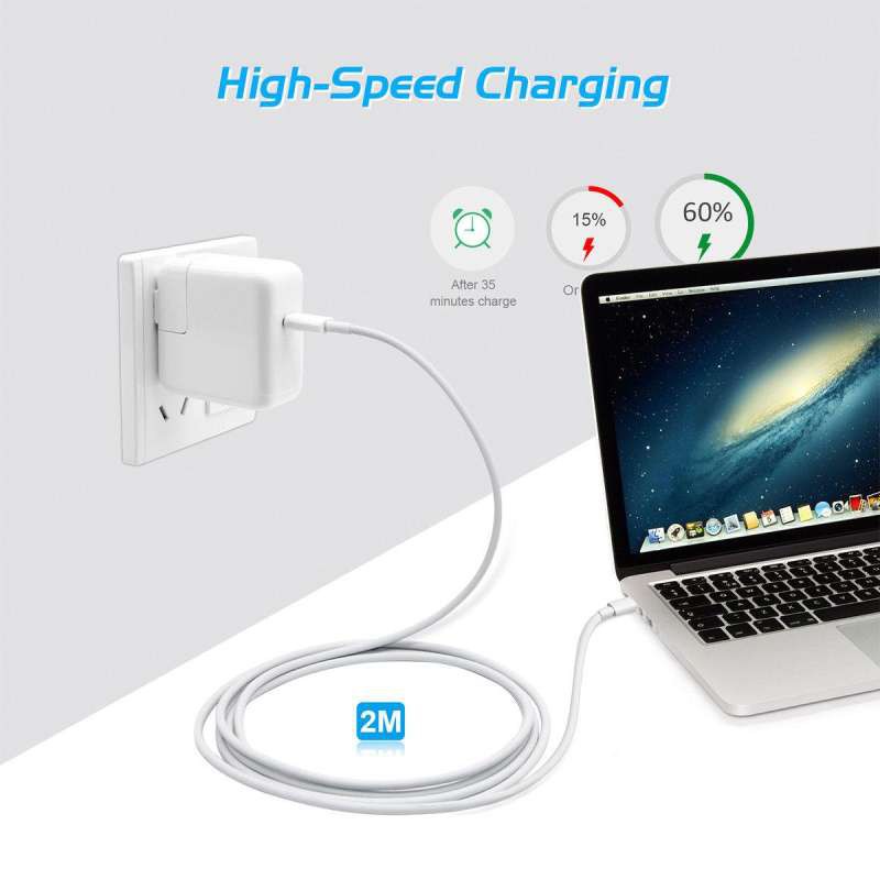 เครื่องชาร์จอะแดปเตอร์แปลงไฟ USB-C 61W พร้อมสายชาร์จ USB-C เป็น USB-C 6.56 ฟุต (2 เมตร) สายชาร์จเร็ว