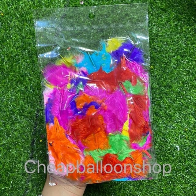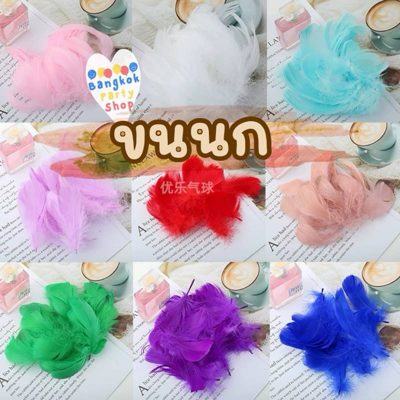 (1ถุง=100ชิ้น) ขนนก ขนนกใส่ลูกโป่ง ตกแต่งบ้าน พร็อพถ่ายรูป ใส่ลูกโป่ง อุกกรณ์ประกอบฉาก (ส่งด่วนจากกทม./ราคาถูกที่สุด)