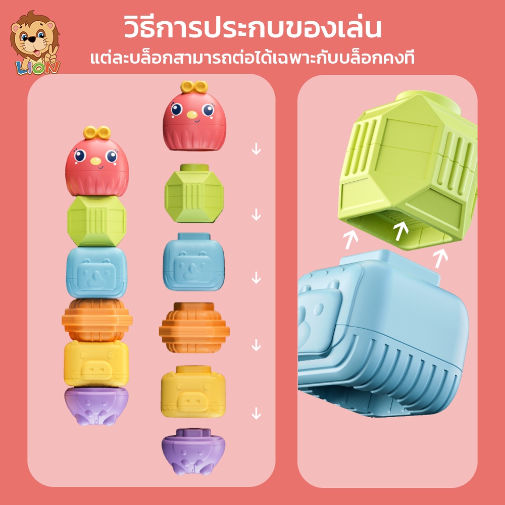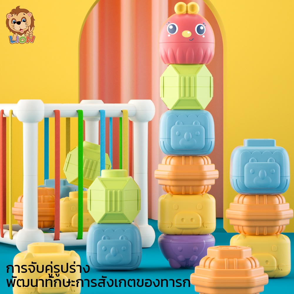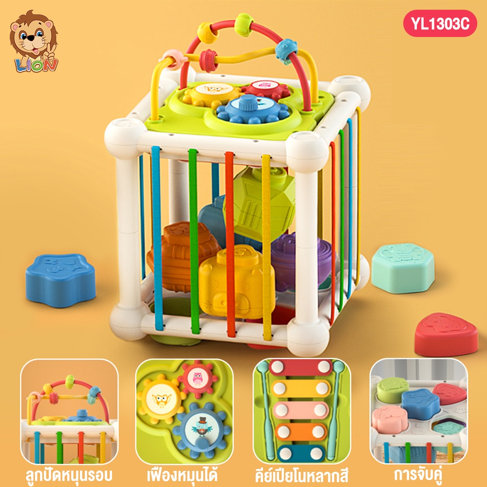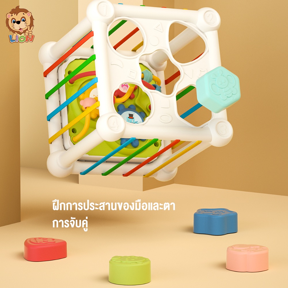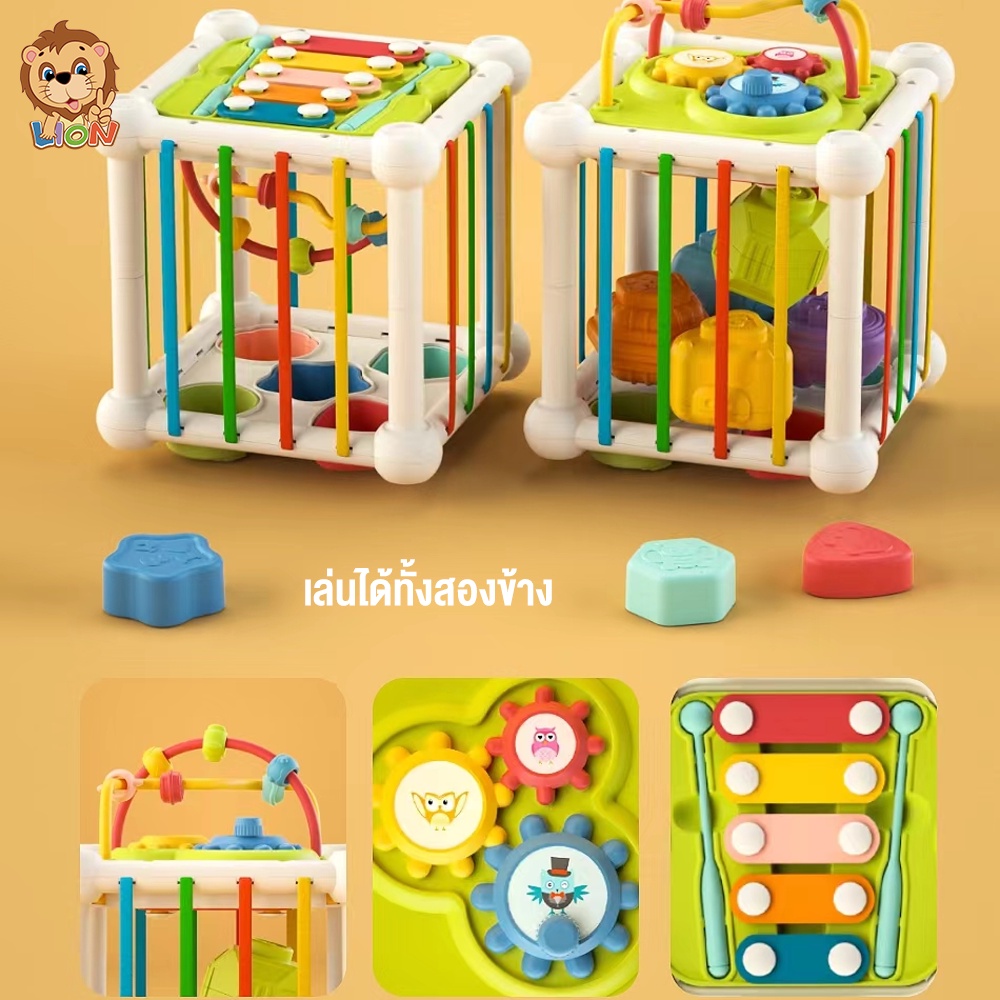 LionToys ของเล่นเด็ก กล่องบล็อคหยอด กล่องกิจกรรม 6in1 บล็อกตัวต่อสีรุ้ง ของเล่นเสริมพัฒนาการเด็ก