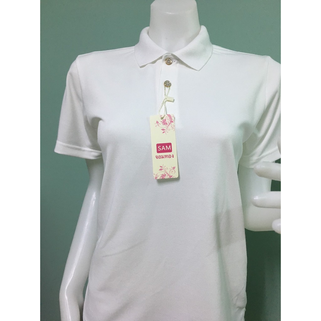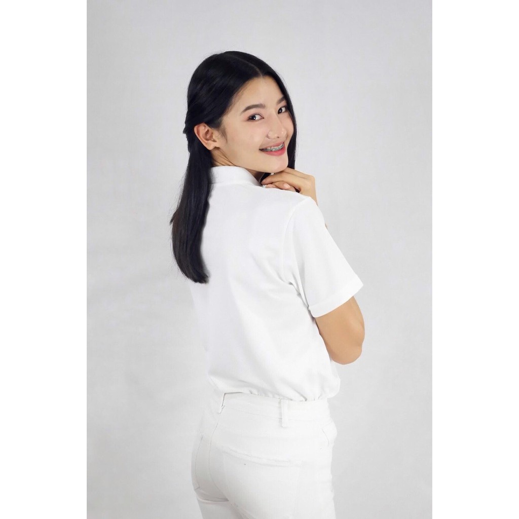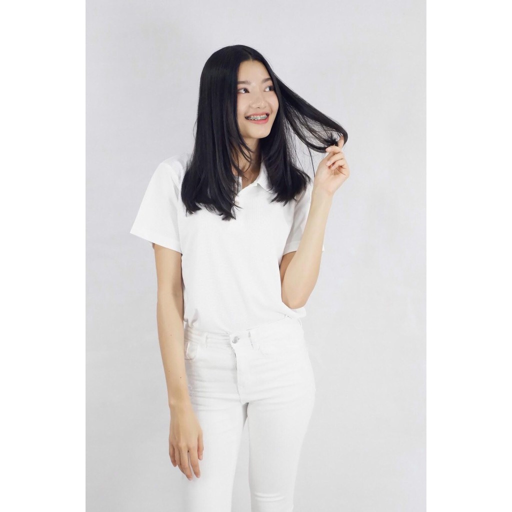 🔥พร้อมส่ง🔥เสื้อโปโลสีพื้น คอปก สีขาว-ผู้หญิง