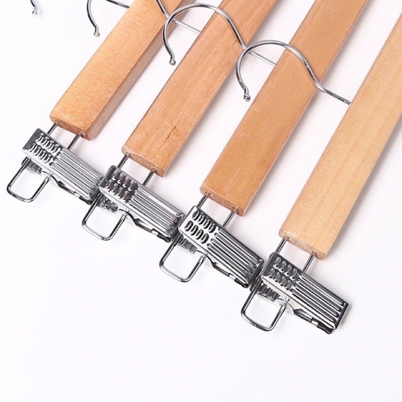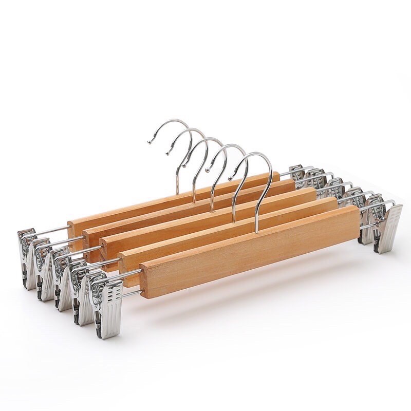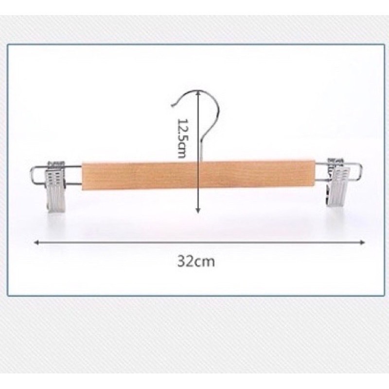 ไม้แขวนไม้ มีหนีบเหล็ก (12ชิ้น) ไม้แขวนกระโปง32cm ไม้แขวนกางเกง