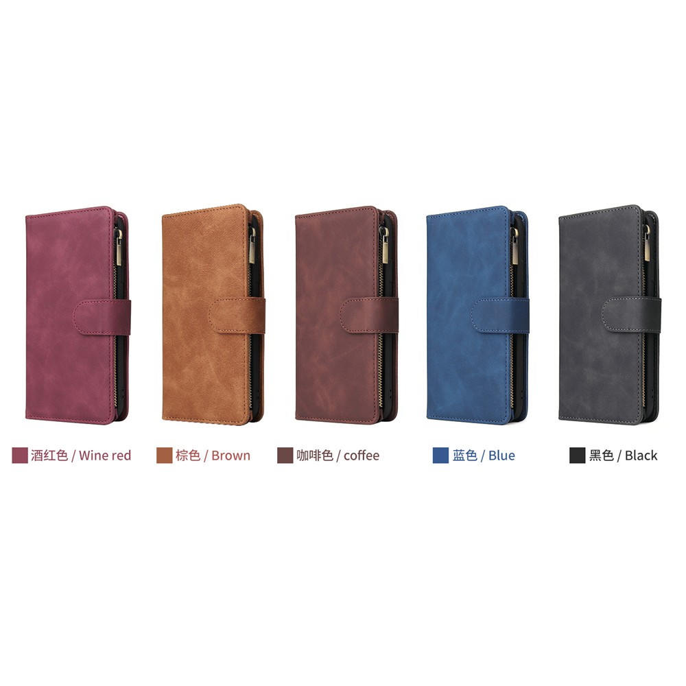 Iphone 12 13 11 Pro X XR XS Max 7 8 6 6s Plus SE 2020 Casing Multifunctional Zipper Wallet PU Leather Flip Cover Case