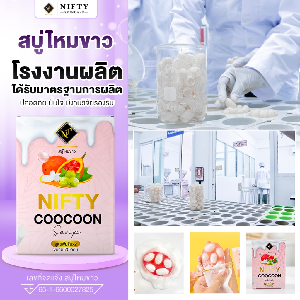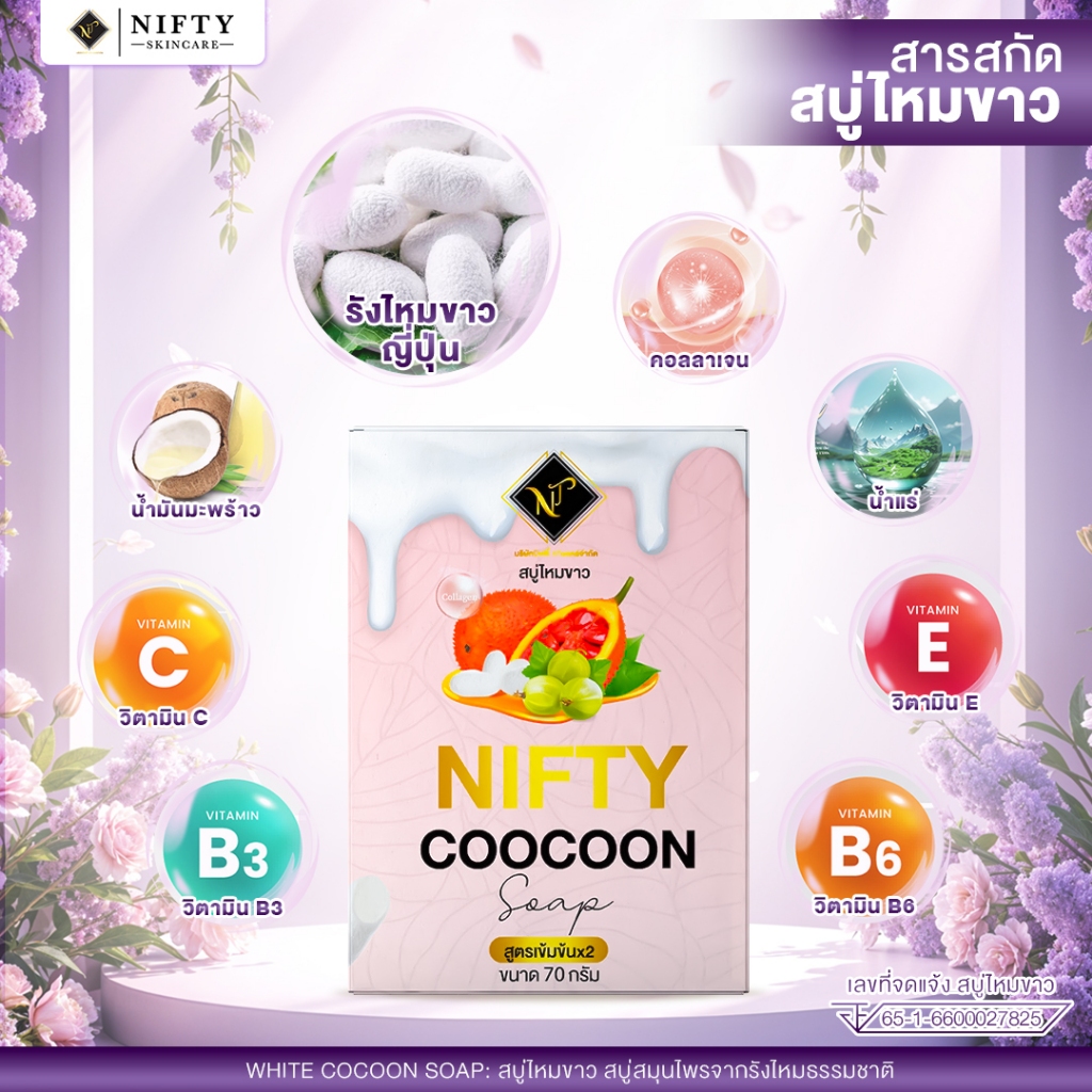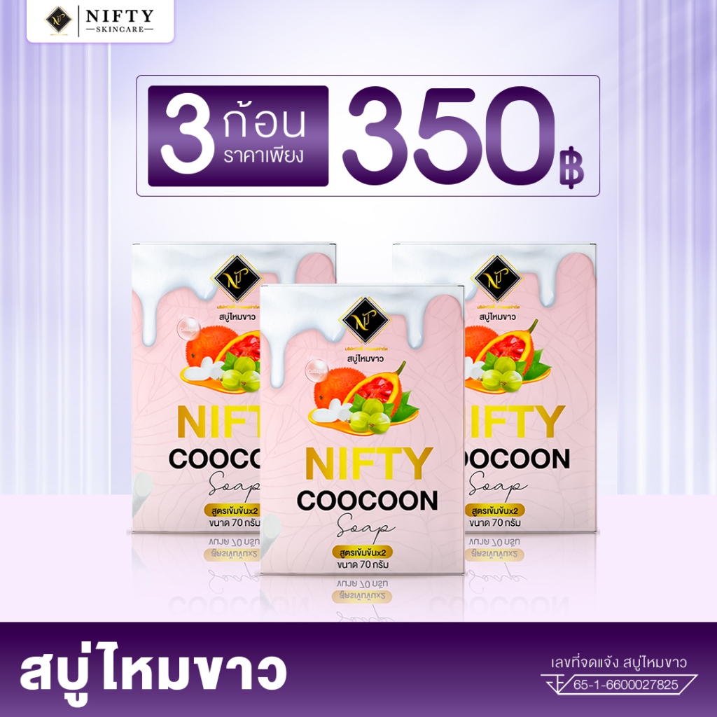 [ร้านเจ้าของบริษัท] สบู่ไหมขาว Nifty Skincare โปร 3 ก้อน 350 สบู่ผิวขาว ใส ลดสิวเสี้ยน ผลิตจากรังไหม