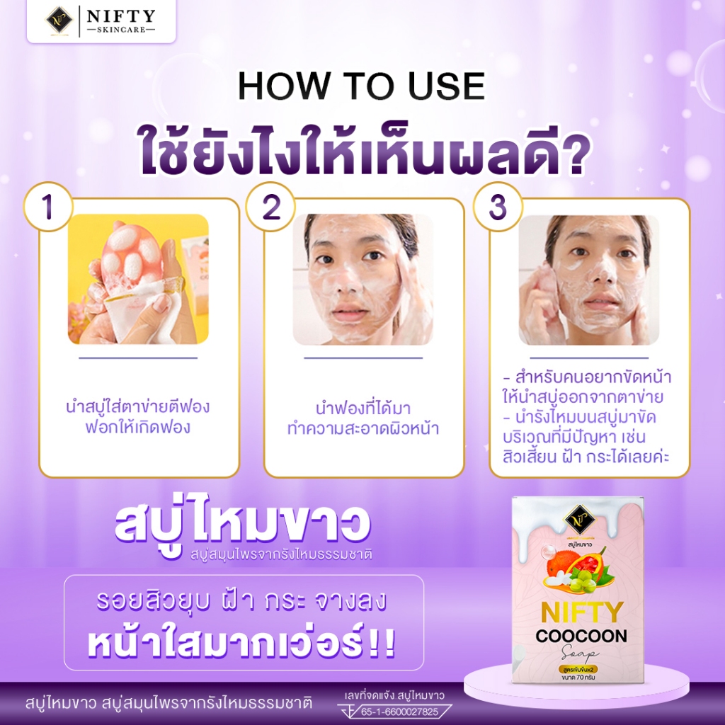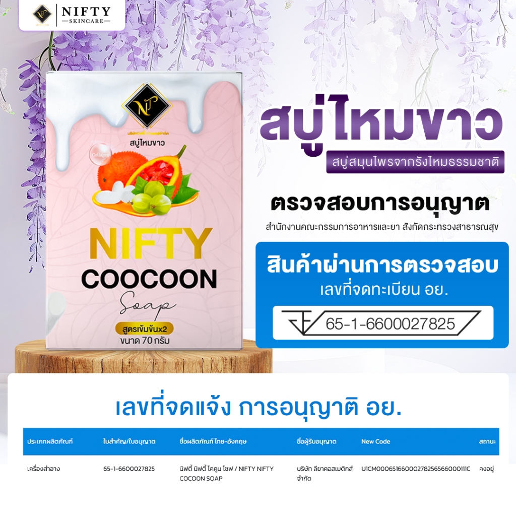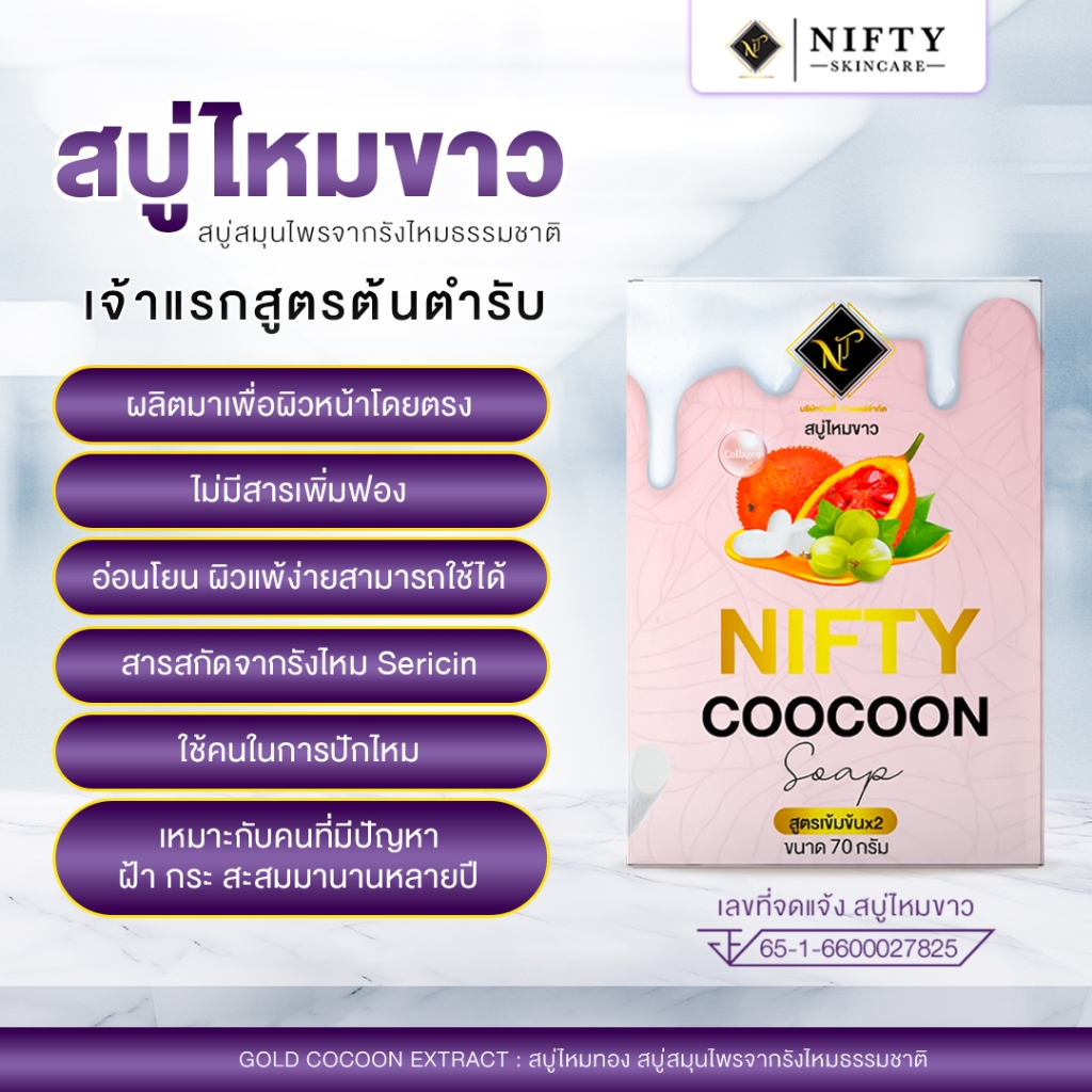 [ร้านเจ้าของบริษัท] สบู่ไหมขาว Nifty Skincare โปร 3 ก้อน 350 สบู่ผิวขาว ใส ลดสิวเสี้ยน ผลิตจากรังไหม