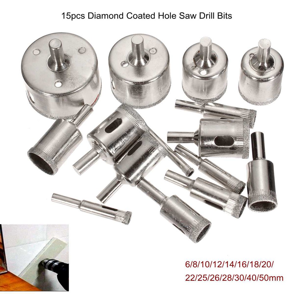 15PCS. ดอกเจาะกระจก กระเบื้อง หินแกรนิต ชุด15ดอก 6-50มิล โฮลซอ สว่าน หัวเพชร