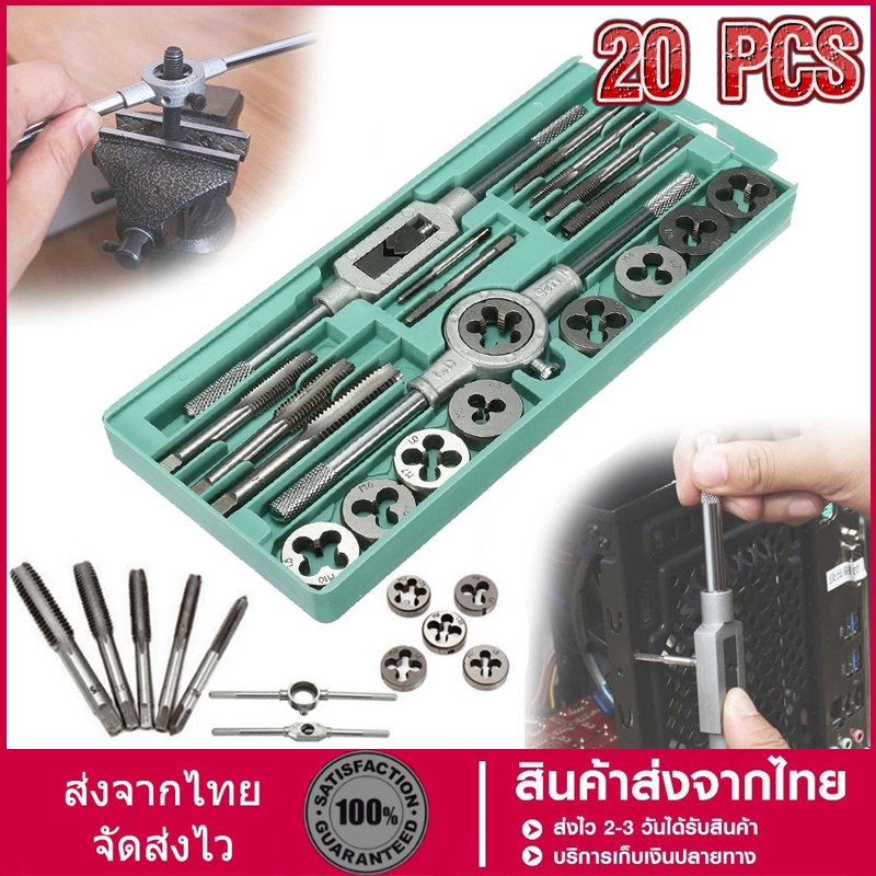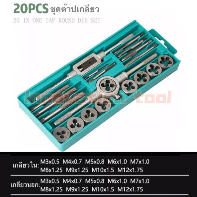 ชุดต๊าปเกลียวตัวผู้ ตัวเมีย ด้ามจับต๊าป & ประแจ T จับ M3-M12 ดอกต๊าปเกลียว ตาปเกลียวในเกลียวนอก ชุด12ชิ้น/20ชิ้น