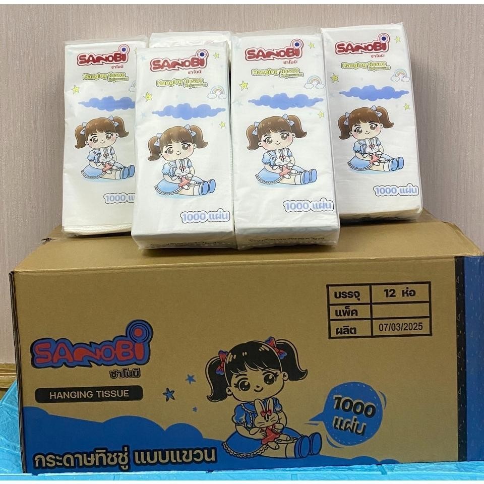 ทิชชู่แบบแขวน 1000 แผ่น ( 1 ห่อ ) 250 ดึง เนื้อนุ่ม ไม่เป็นฝุ่น