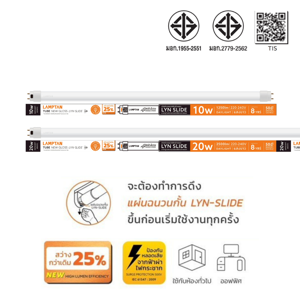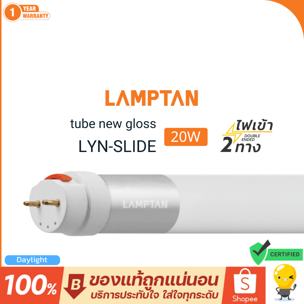 Lamptan หลอดไฟ 20W LED T8 ยาว 120 ซม Tube New Gloss LYN-Slide ไฟเข้า 2 ทาง (Double Ended) รวมแวท