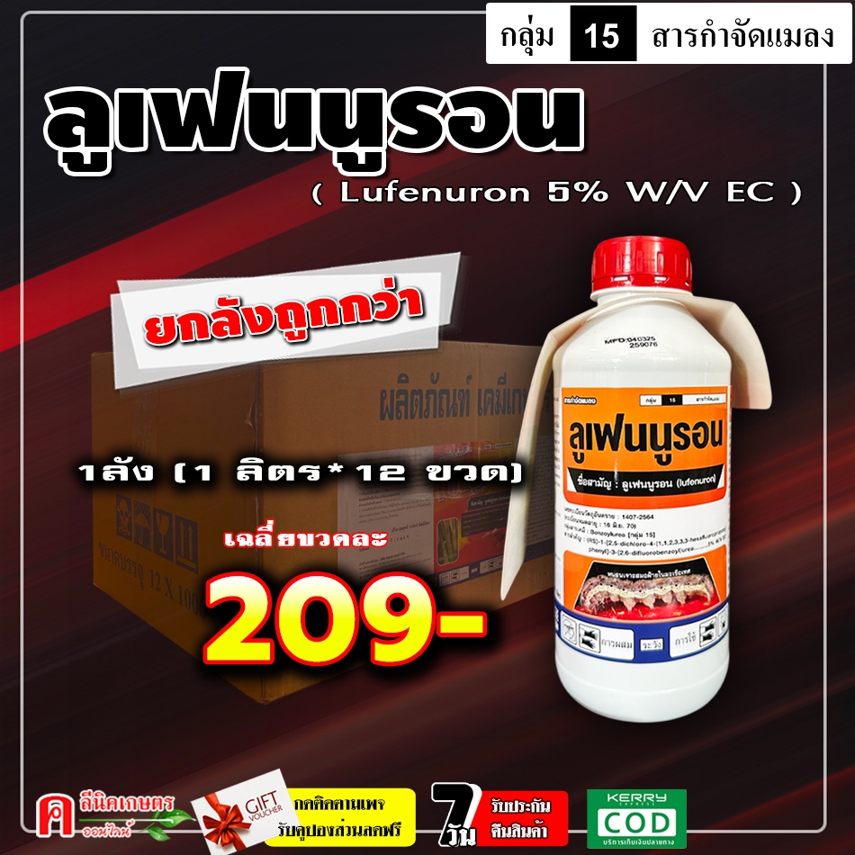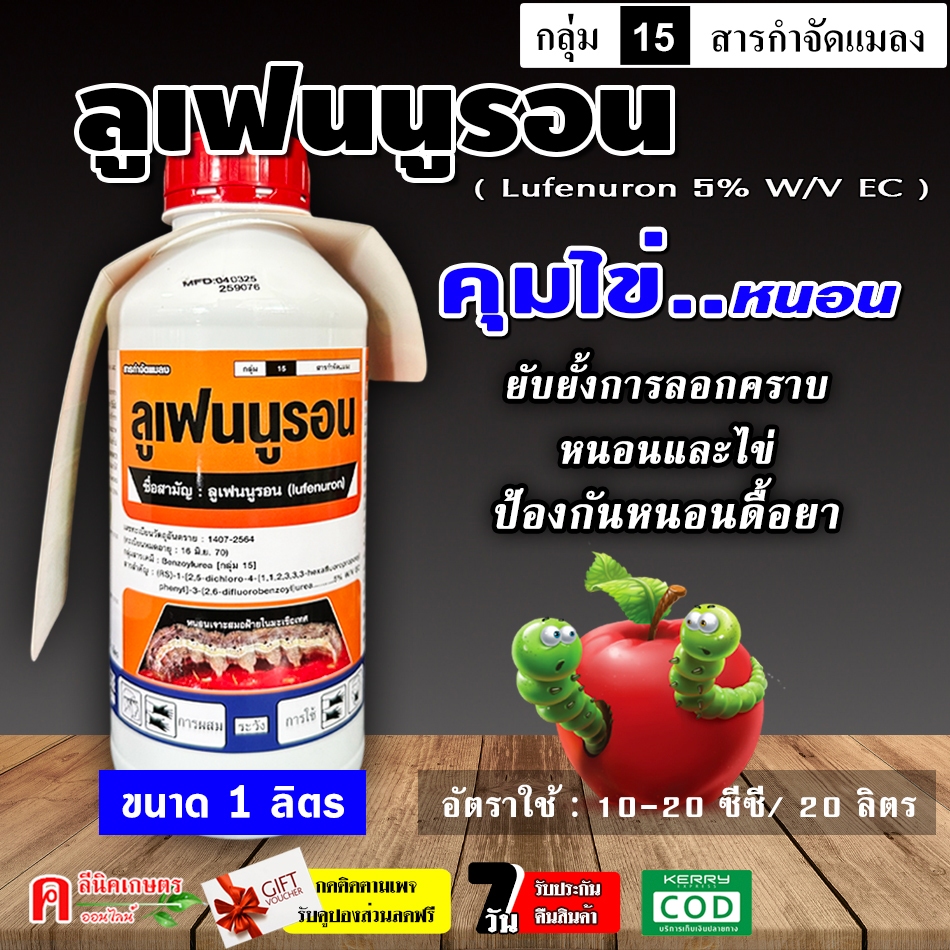 // ขายยกลัง // ลูเฟนนูรอน ( 1 ลิตร ) ป้องกันกำจัดแมลง ฆ่า-คุมไข่ หนอน เพลี้ย ยั้บยั้งการลอกคราบของหนอน ป้องกันหนอนดื้อยา